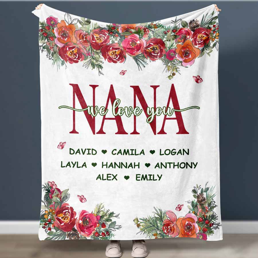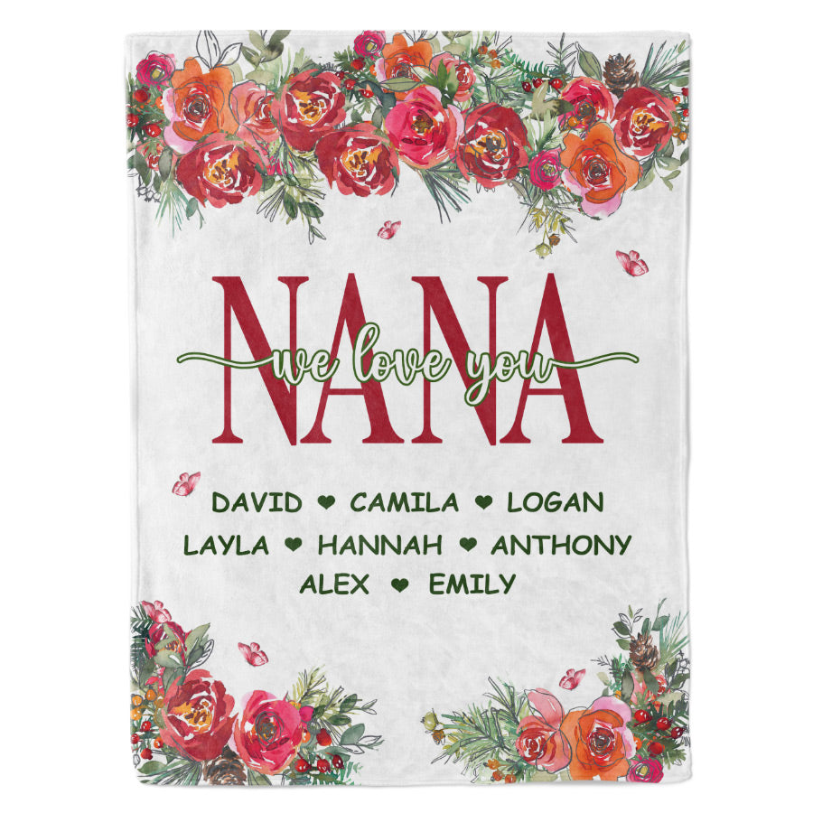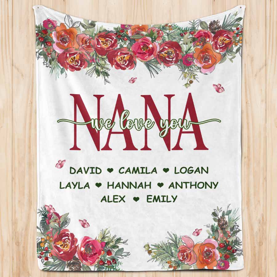 Shop now and create a custom blanket that will bring a smile to her face and warmth to her heart. Give her a gift she'll treasure for years to come. Order your personalized nana blanket with grandkids names today and let your grandma know she holds a special place in your heart.