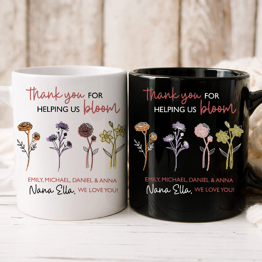 You can bring a smile to grandma's face this Mother's Day with personalized nana gift | personalized mother’s day gifts grandma she can enjoy for years to come with her very own special mug. This extraordinary grandma garden gift is more than just a piece of art; it's a heartfelt tribute to the incredible woman who has made a lasting impact on your life. This sturdy ceramic mug is decorated with a heartwarming photo of you and your little ones that will transport her back to cherished moments whenever she uses it.