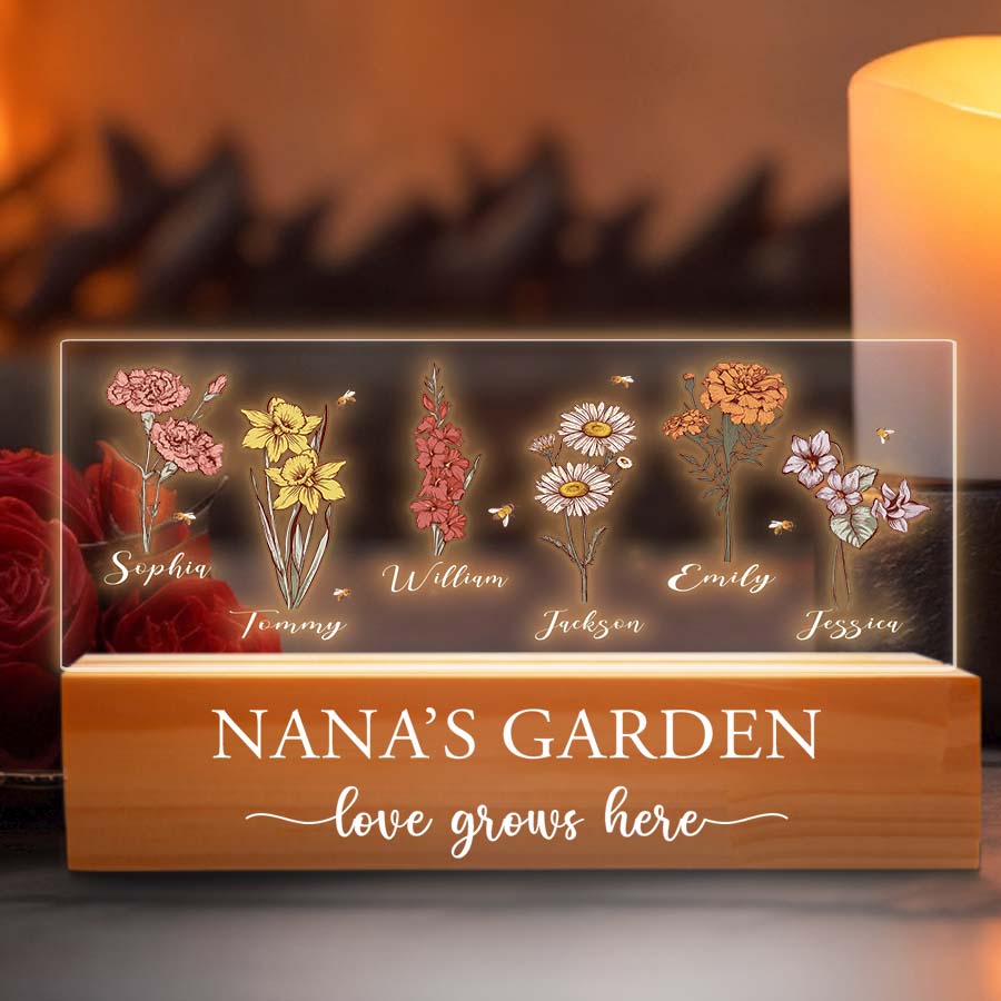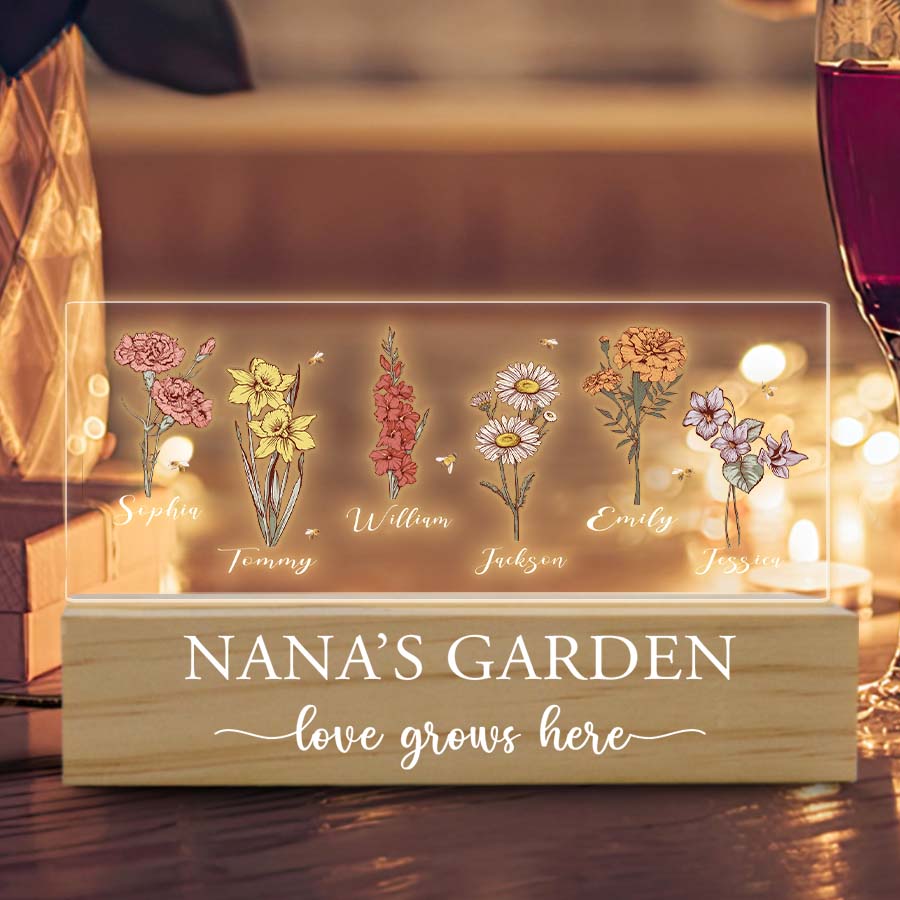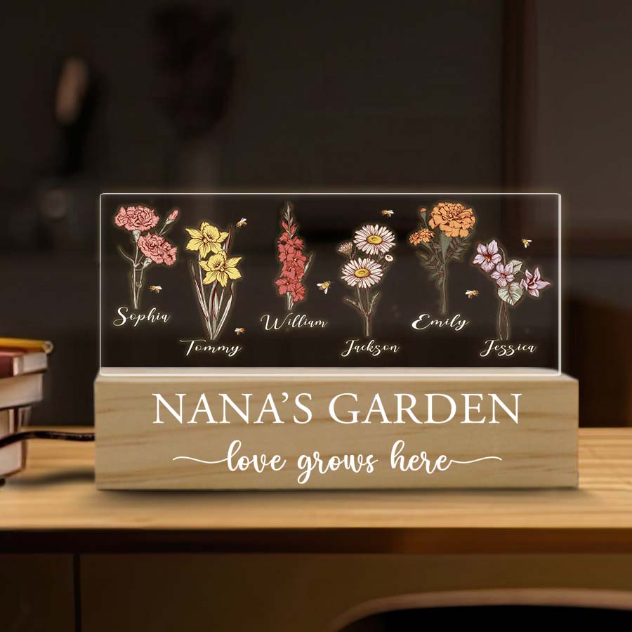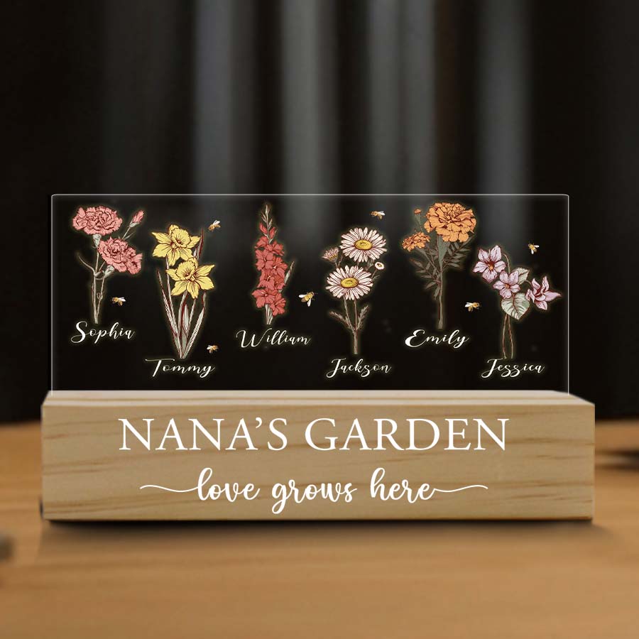 Our free customization for all personalized nana's garden led light | gigi gifts for grandma allows you to effortlessly personalize the plaque with your child's name and birth month flower. What better way to show Grandma how much you appreciate all she does than with this thoughtful, lasting tribute to her love of family and gardening? Her backyard sanctuary will become a celebration of love that lasts for years, as future generations are added to her flower plaque family.