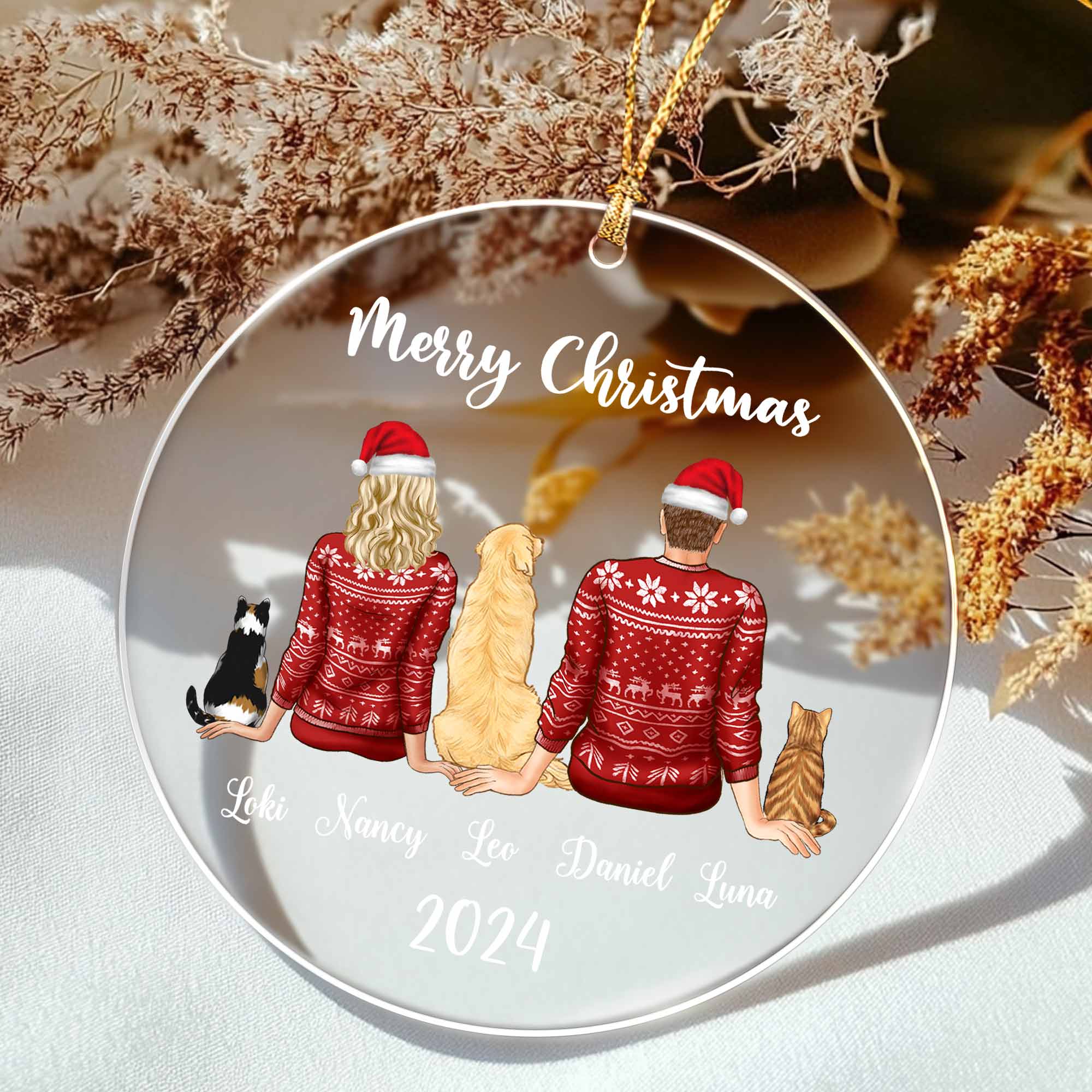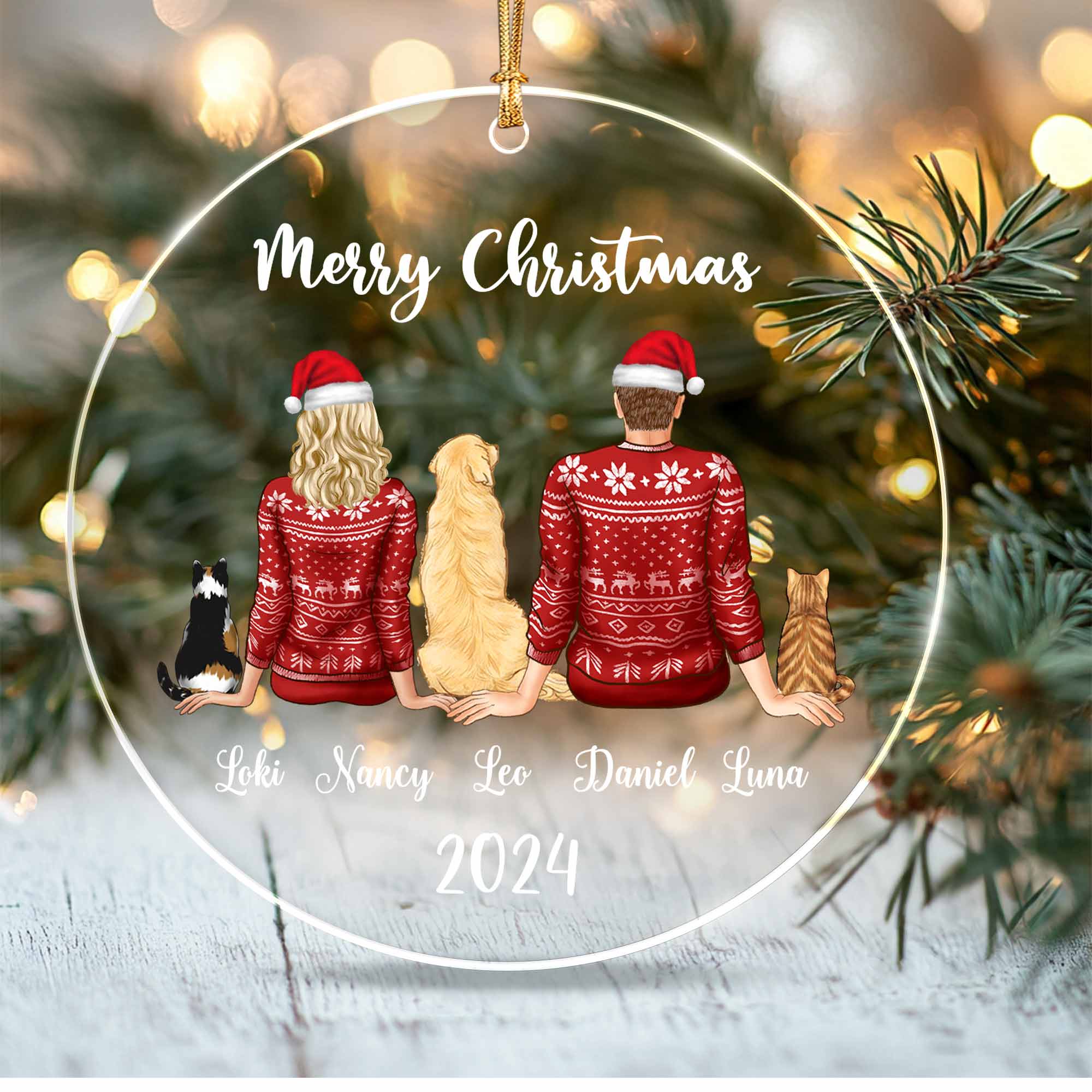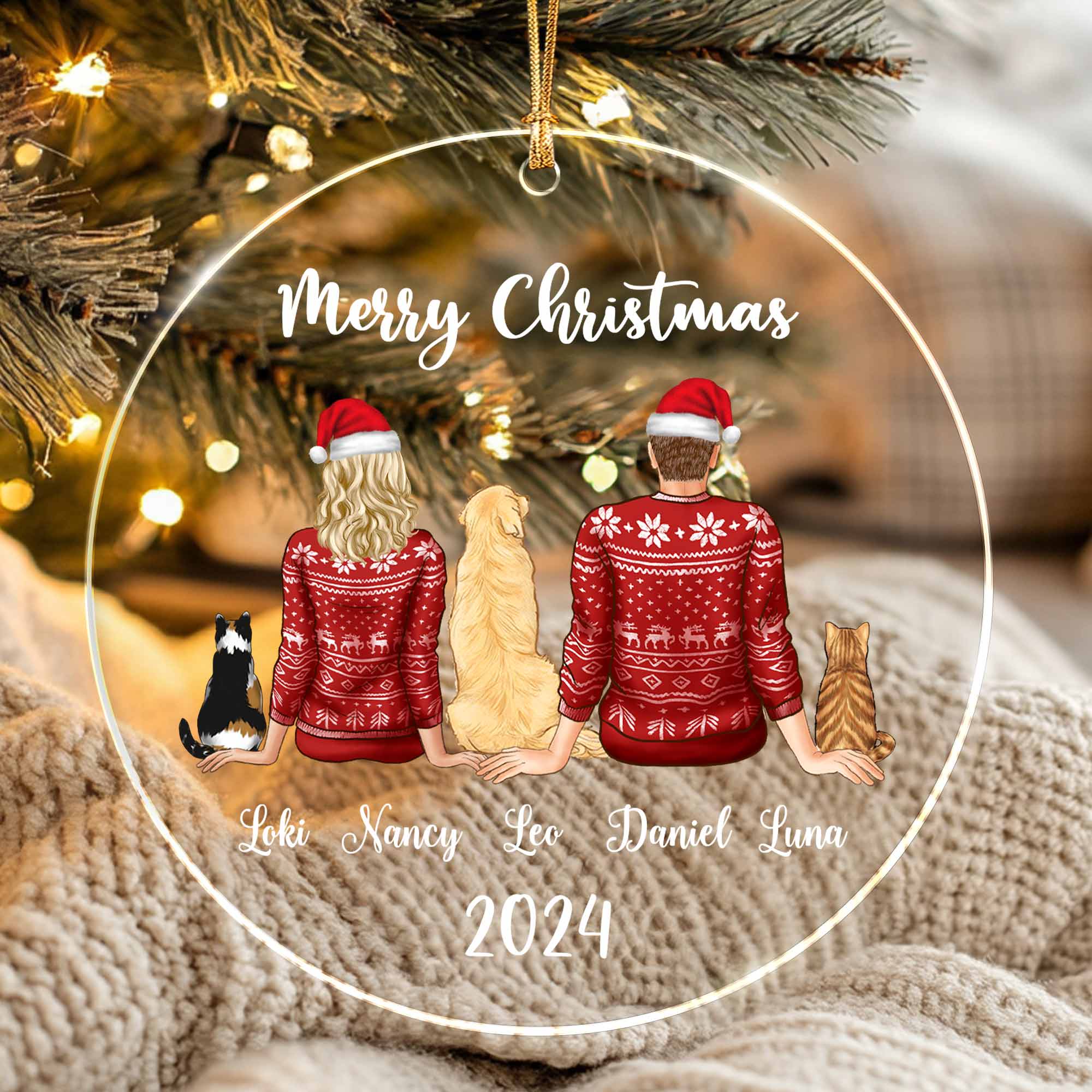 Personalized Ornaments Couple With Dog | Custom Couple Christmas Ornaments