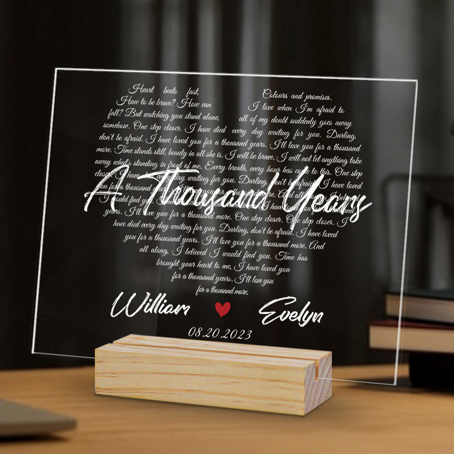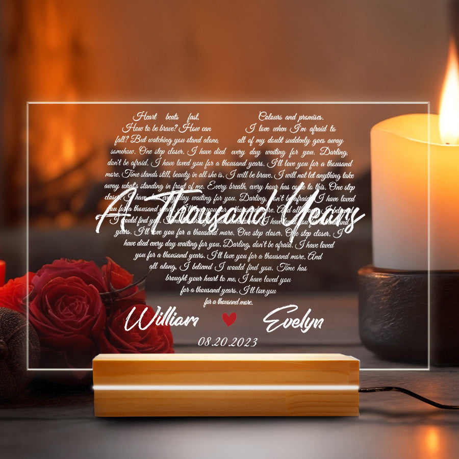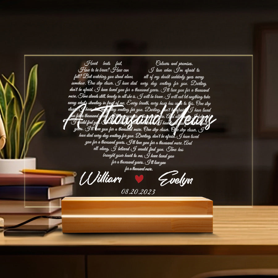 Personalized Valentines Gifts for Wife | Custom Song Acrylic Plaque Night Light