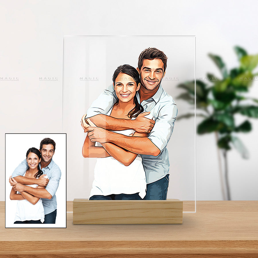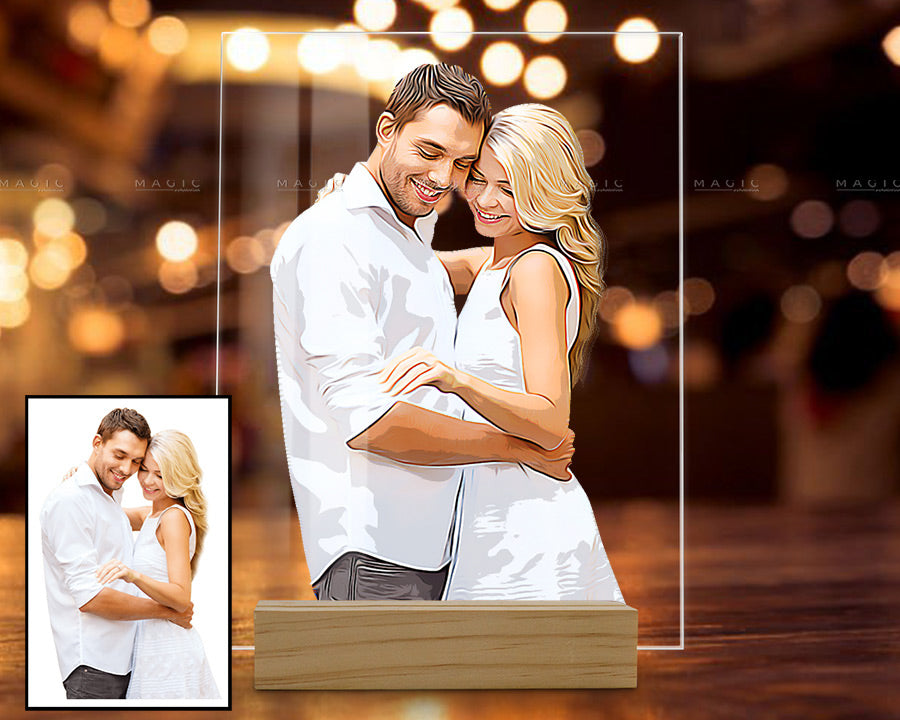 Valentines Custom Gifts for Him | Acrylic Plaque Custom Photo for Her | Night Light Plaque Wooden Sole