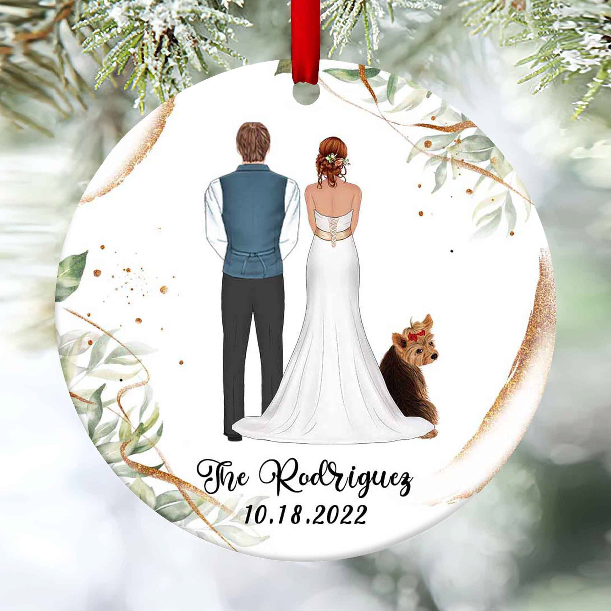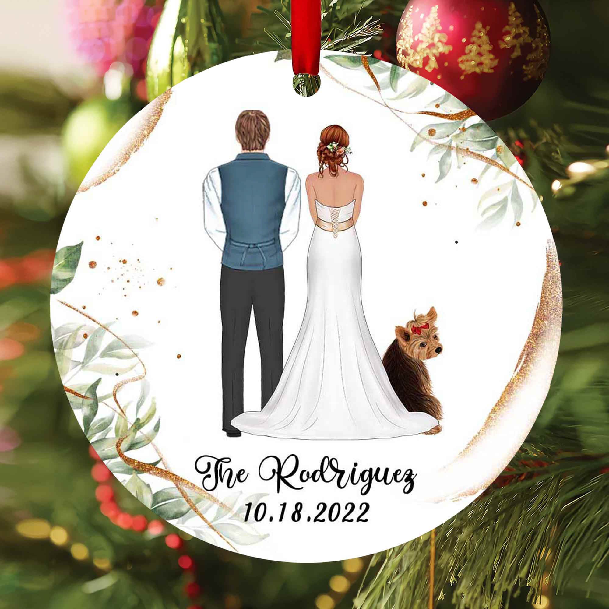 Personalized Couples Christmas Ornament, Customized Valentines Gifts, Couple with Dog Christmas Ornament, Couple Ornament