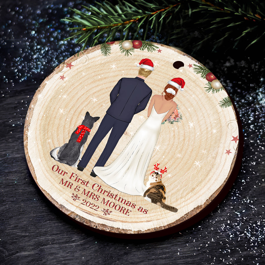 Celebrate your love and special day with personalized wedding ornaments | first year married ornament for your tree. The wedding gift Christmas ornaments display your names, wedding date, or a short message to immortalize your marriage for the holidays to come. Hanging proudly year after year, these Personalized Christmas Ornaments will become a treasured tradition reminding you of your commitment to one another.