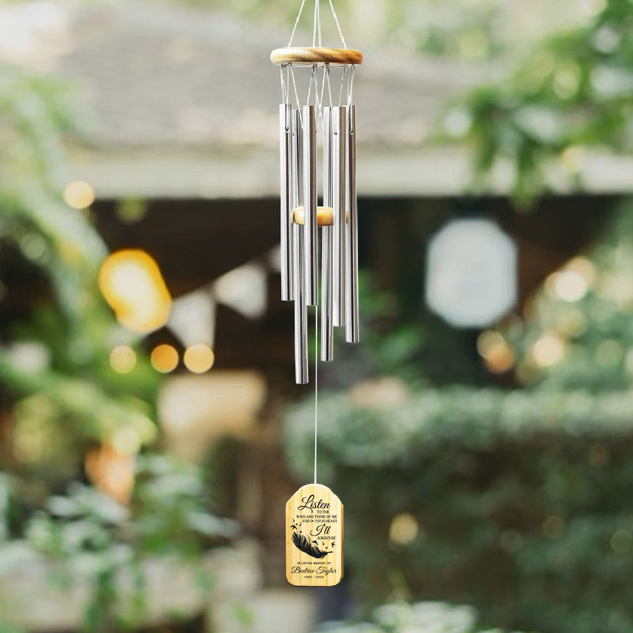 A personalized wind chime memorial is a cherished keepsake sculpted from memories. Its beauty and poignancy will stand the test of time, just as she did. Shop now for a lasting legacy to the one who held our hearts; a memorial wind chimes to honor them always. The music it brings will soothe pain, lift our hearts, and keep their memory alive.