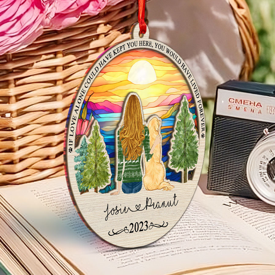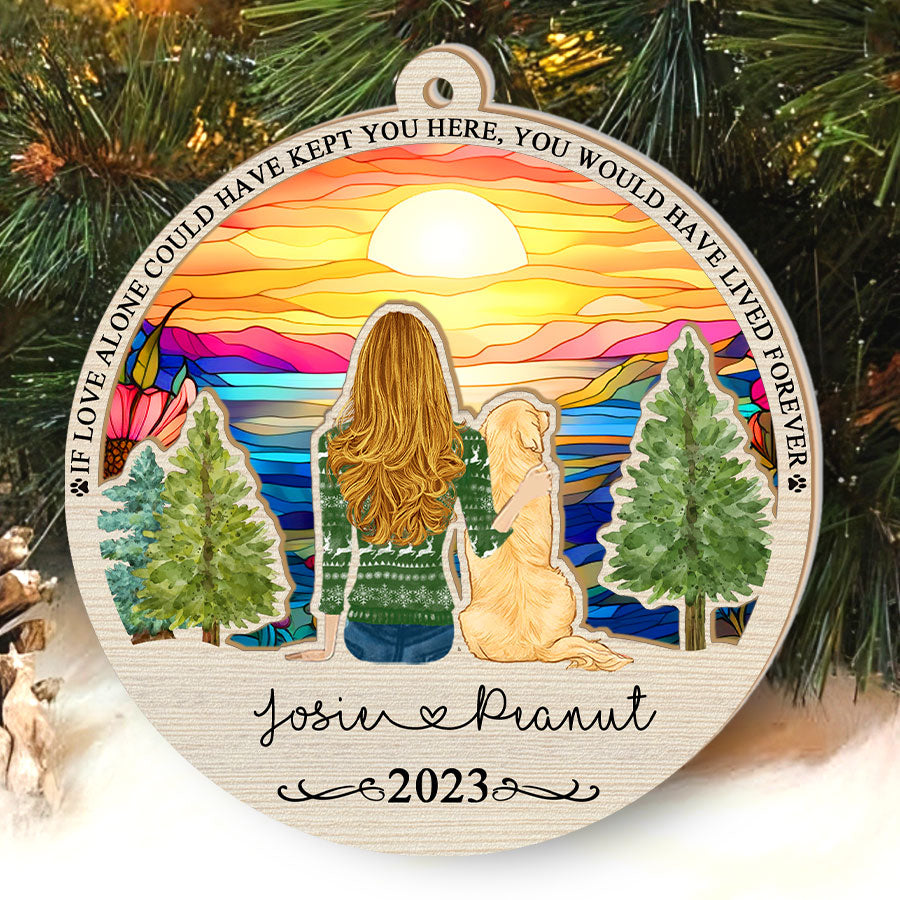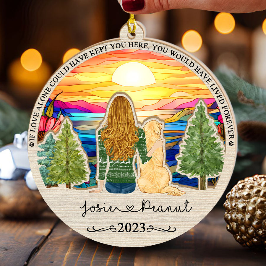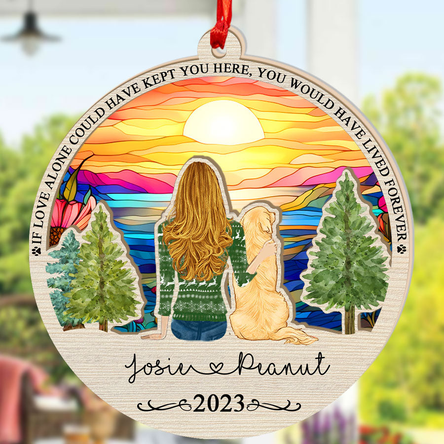 Give comfort, closure, and joyful memories with this beautiful pet memorial suncatcher | personalized dog memorial suncatcher. Order yours today to help ease the heartache of a friend in need. Their pet would want them to find peace - help make that possible with this caring gesture.