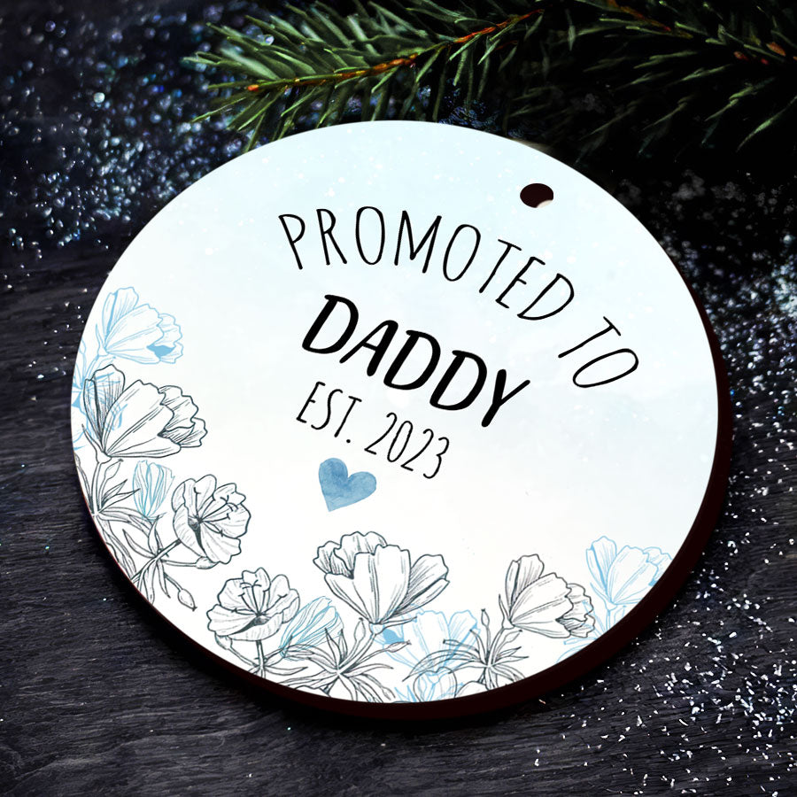 Fatherhood is one of life's greatest gifts. Give your new dad the acknowledgment he deserves this holiday season with this meaningful promoted to daddy est ornament. Help kickstart a tradition that will be treasured for years to come as your family grows. Order yours today to let your new hero of a dad know how valued he is!