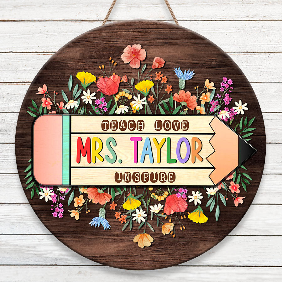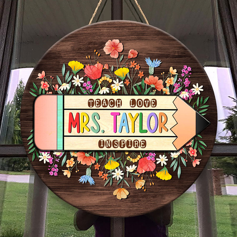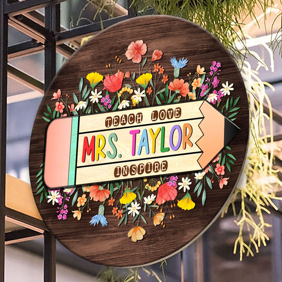 Classroom Door Signs | Customized Gift For Teacher | Wooden Door Hangers For Teachers | Teach Love Inspire