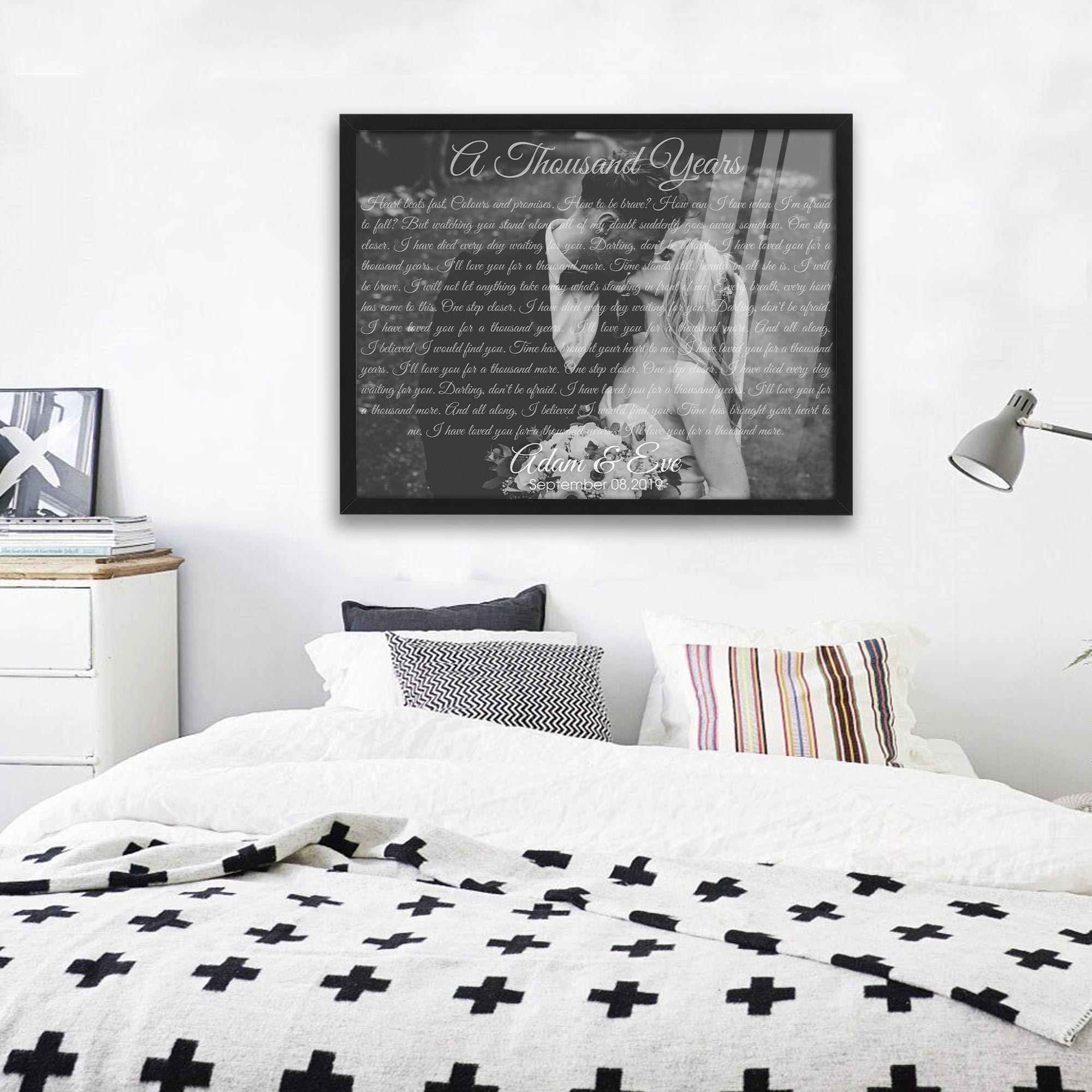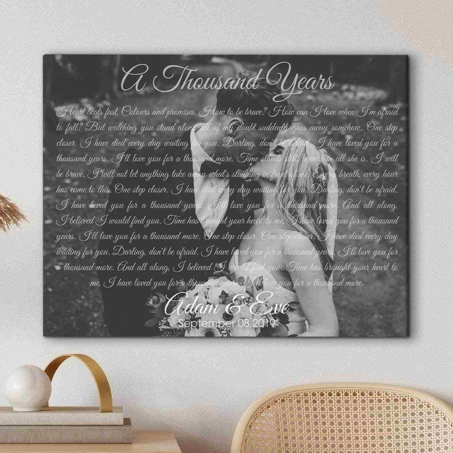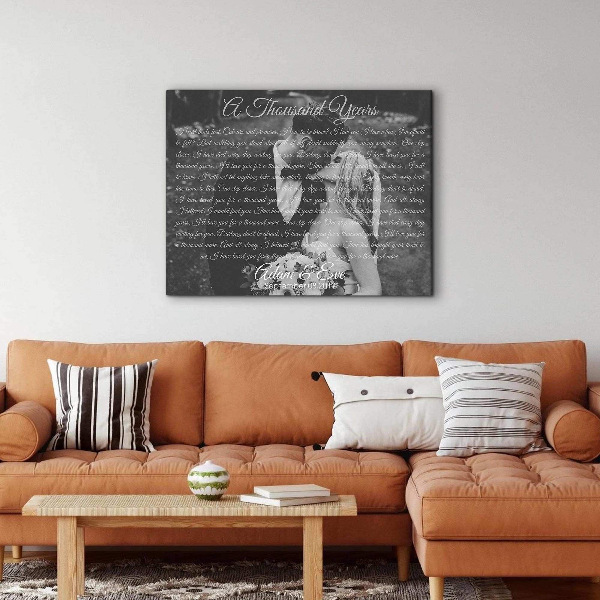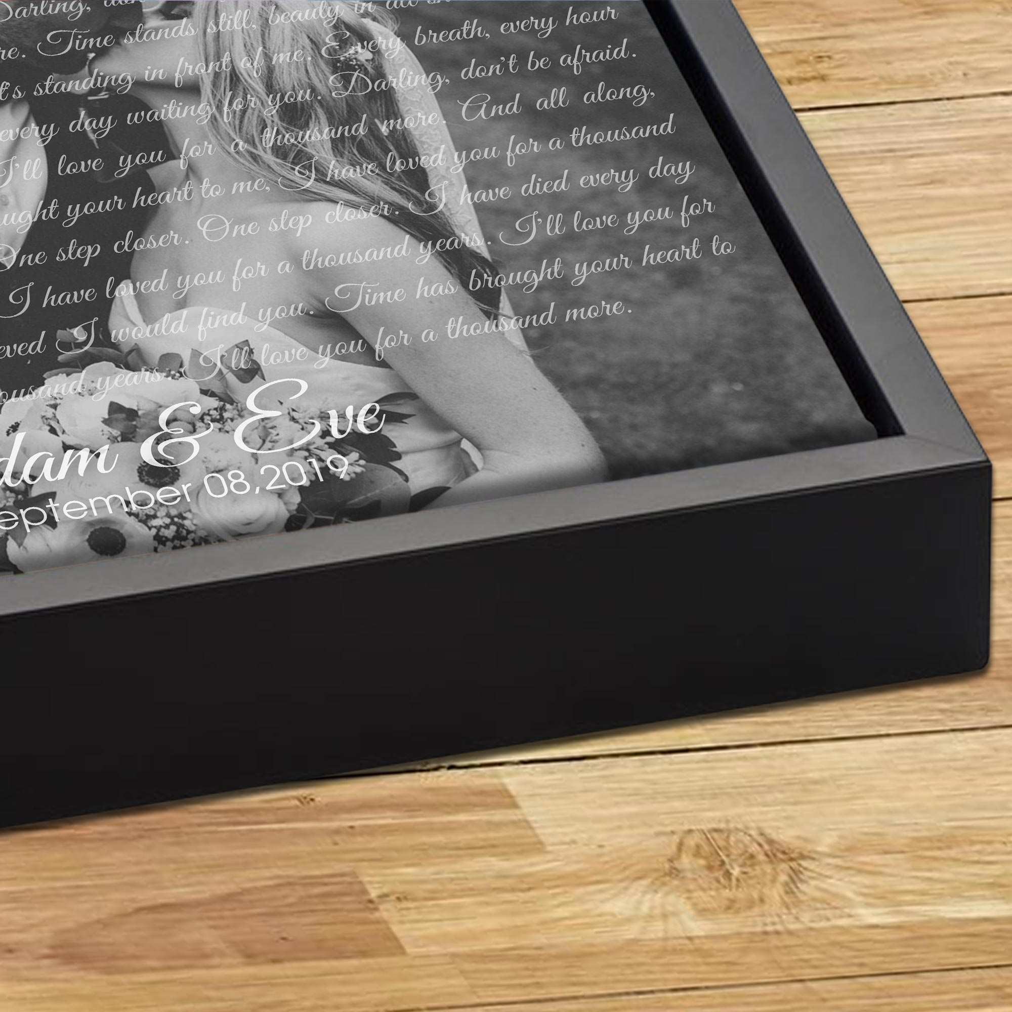 A meaningful gift for your other half on a loving wedding anniversary. He and you have given each other a lot of love and affection and now, together, you build a home. The lyrics of "A thousand years" stand out in the background of the best image of the two of you, and you just need to send us a picture of that best moment, we will give you a surprise.