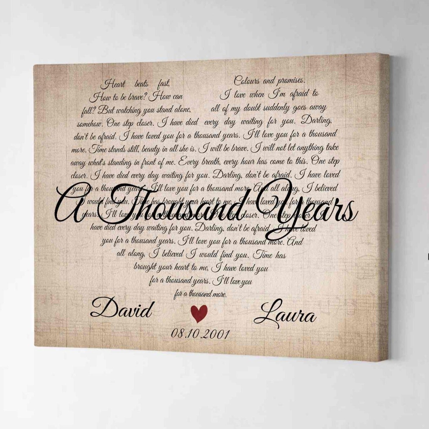 Finding perfect song lyric gifts for the music lovers, why not use song lyrics to create Song Lyric Wall Art that truly speak to your loved one? It could also be a perfect anniversary gift