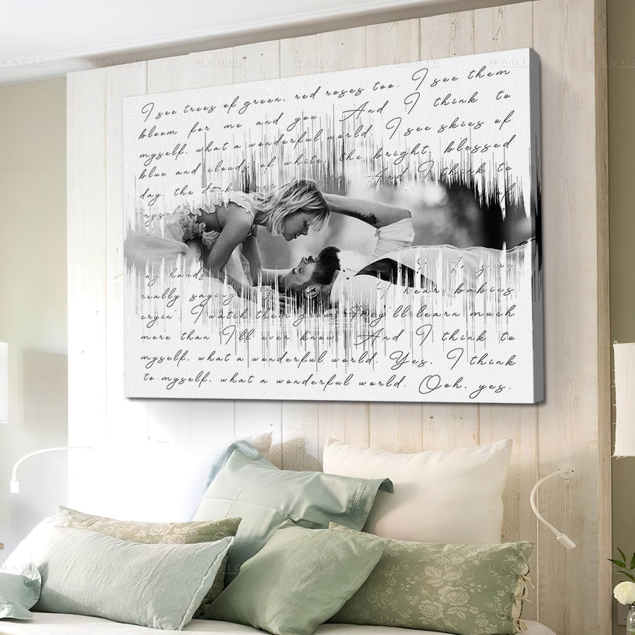 Whether it’s abstract art, oil painting, photographing or graphic design that you’re looking for, our song lyrics anniversary gift will transport you both into the heart of your story. Celebrate your relationship with a unique and personalized canvas print from us today!