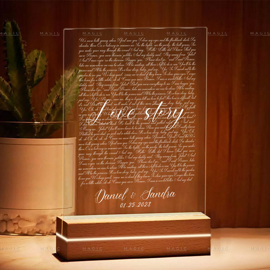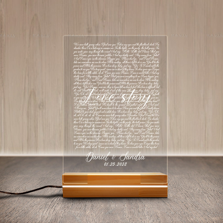 This beautiful song plaque gift is a perfect way to show someone how much you care. The plaque can be personalized with a couple's name or picture, making it a one-of-a-kind gift. Acrylic is a durable and long-lasting material, so this plaque will be remembered for years to come.