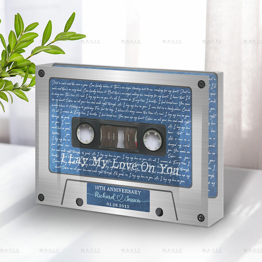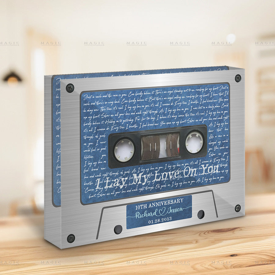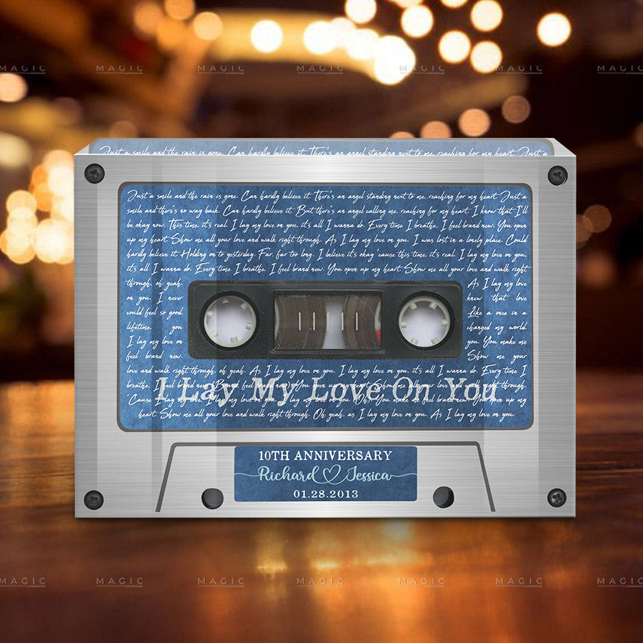 The plaque song print is made from high-quality acrylic and can be personalized with the couple's names or a picture. The plaque has a modern, sleek look that is sure to impress. It is lightweight and easy to display, and it can be hung on a wall or simply set on a table or shelf.