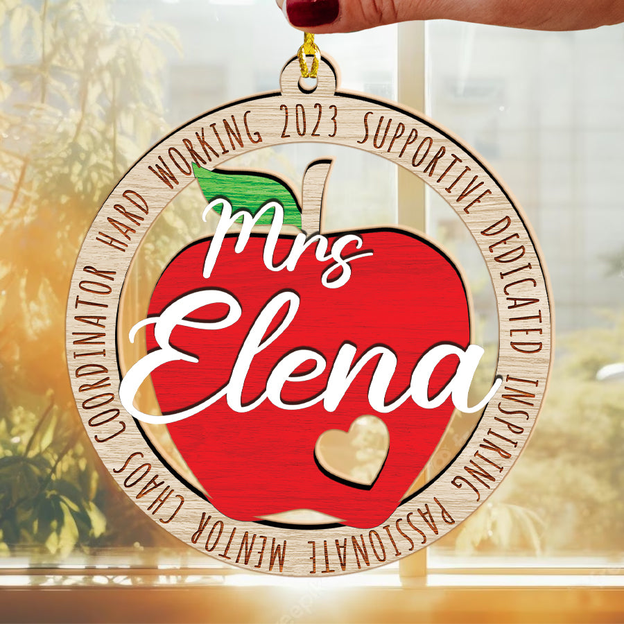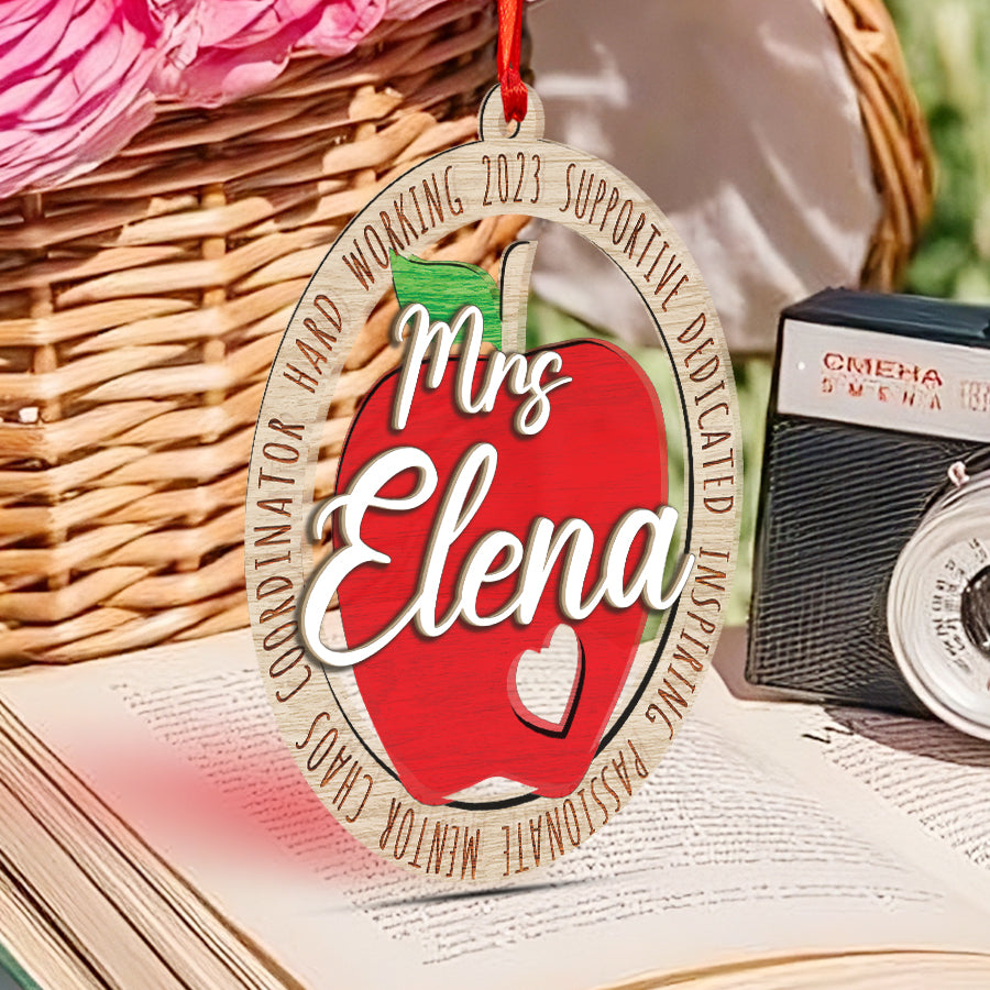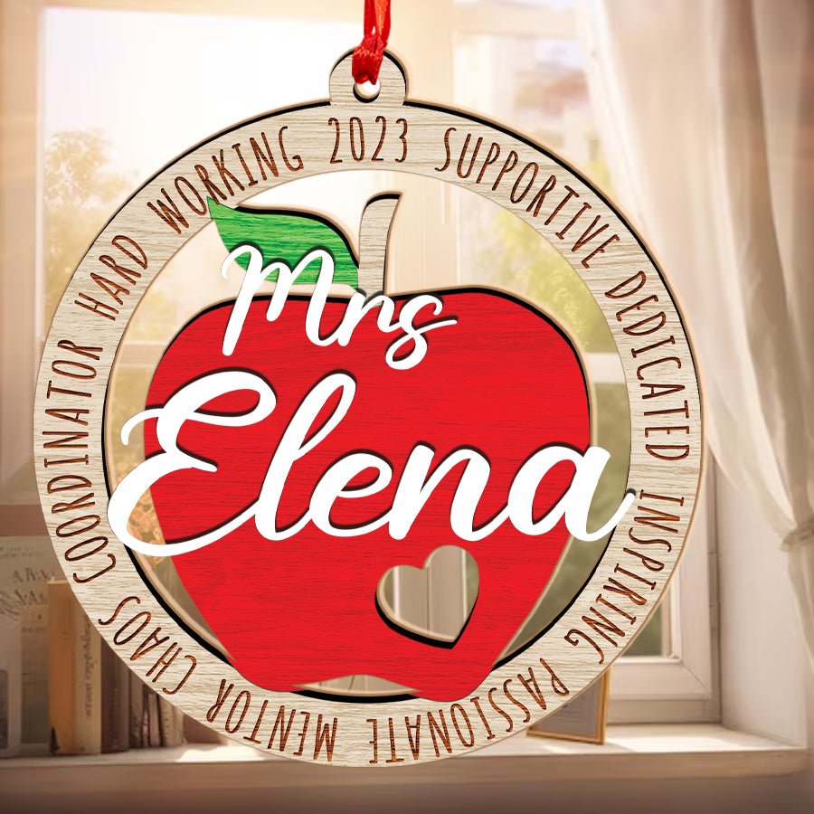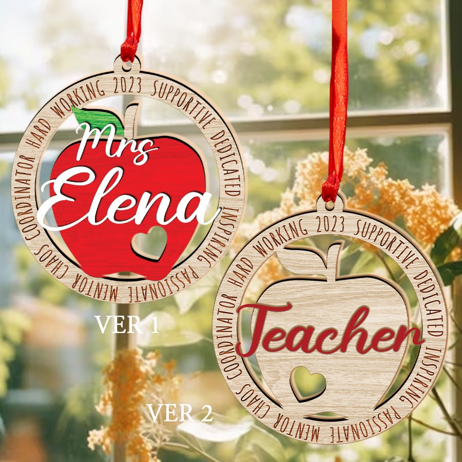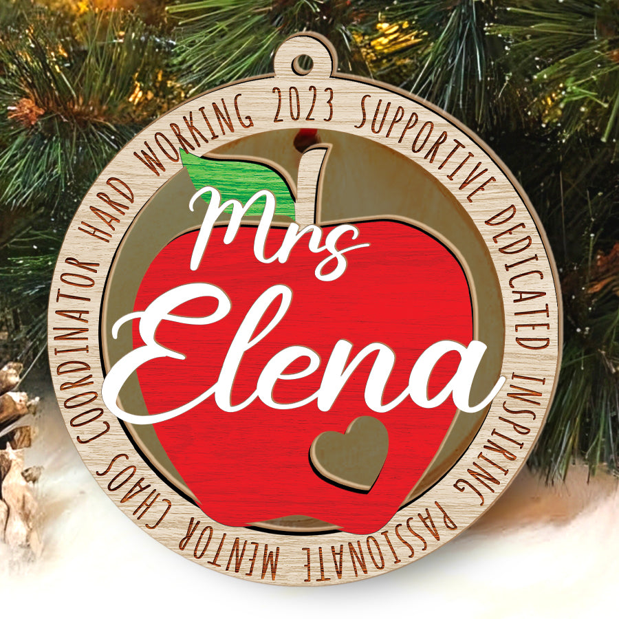 Teacher Apple Ornament | Best Teacher Ornament | Personalized Teacher Ornament | Custom Wooden Ornament With Name