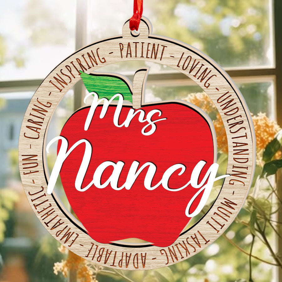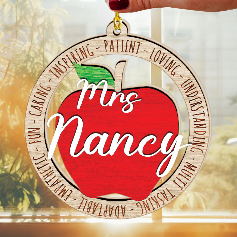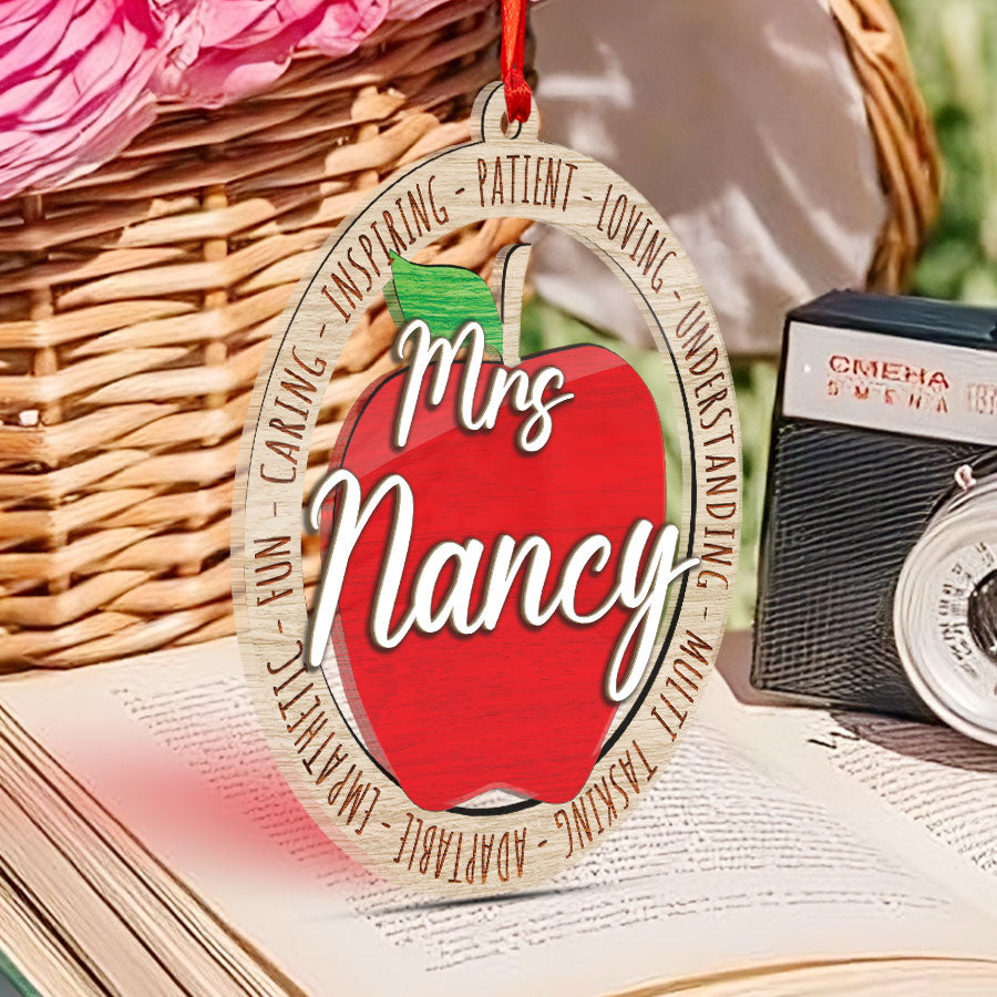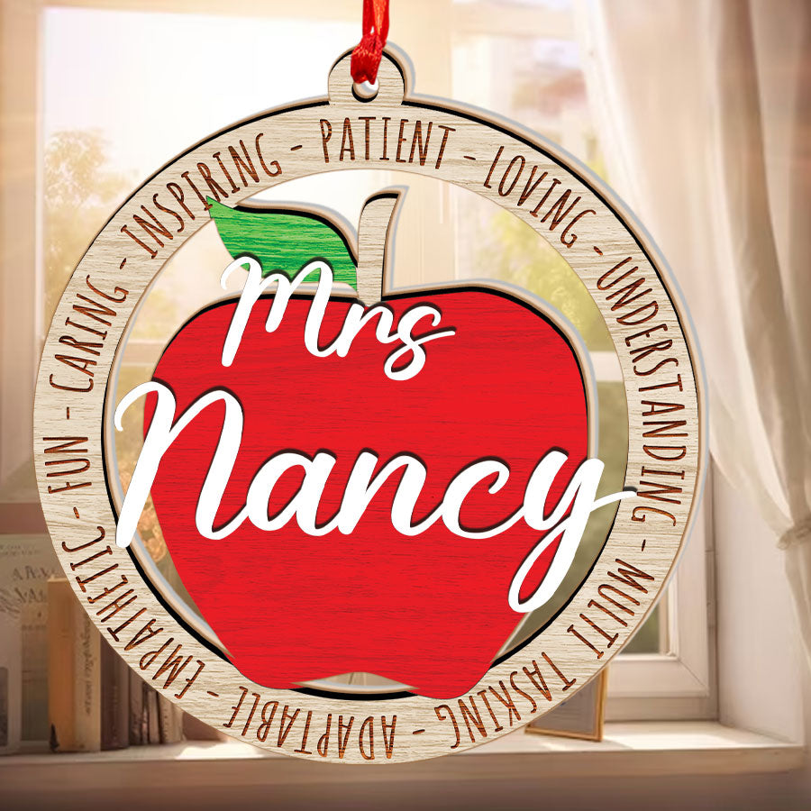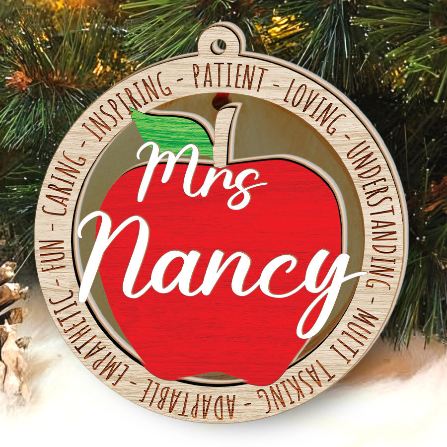 Teacher Apple Ornament | Personalized Teacher Ornament | Wooden Ornaments With Name