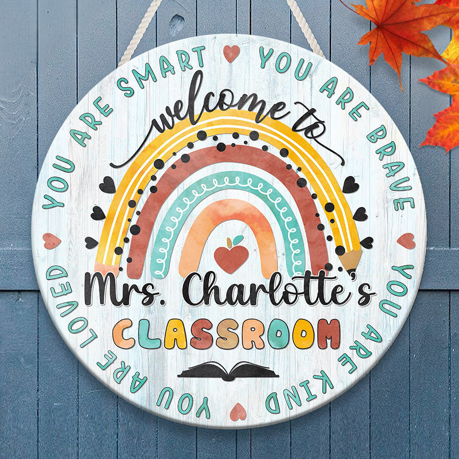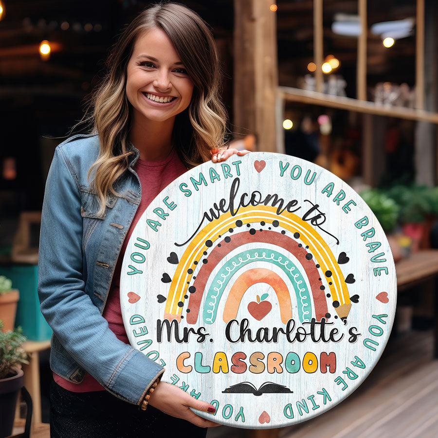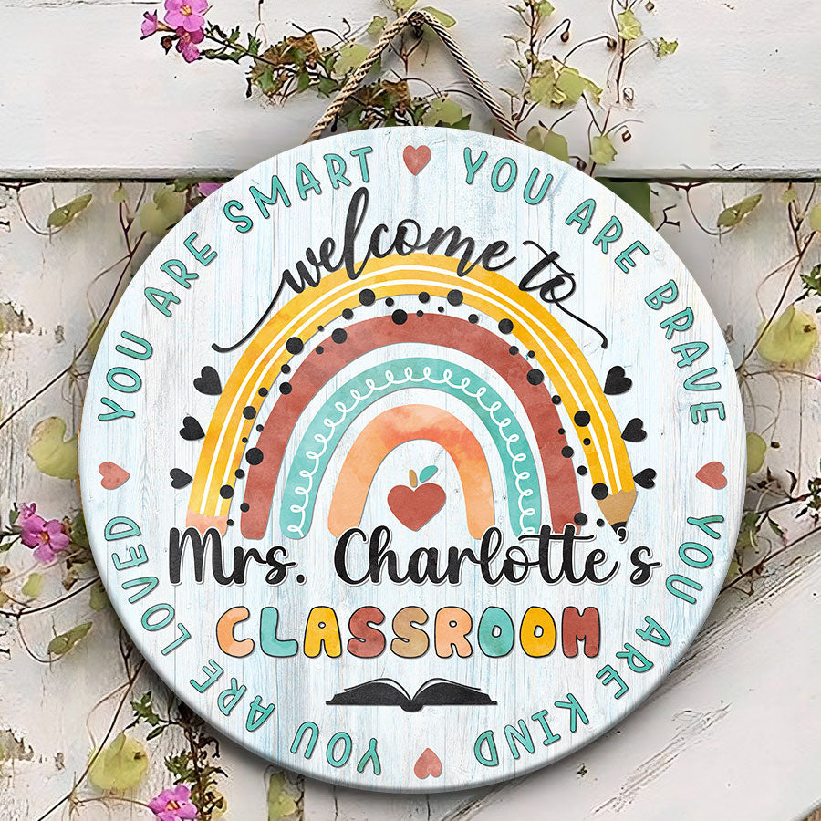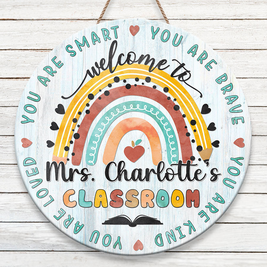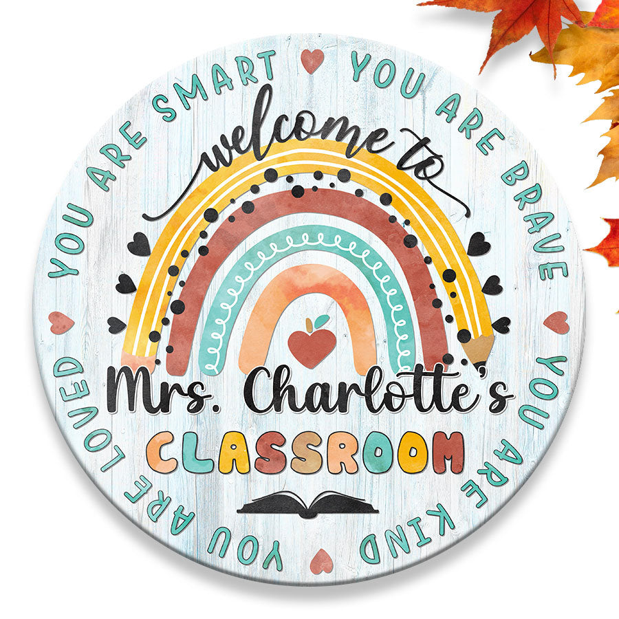 Shop now teacher classroom door signs for a cheerful, personalized teacher door sign and brighten the working day of an educator who shapes the lives of young minds.