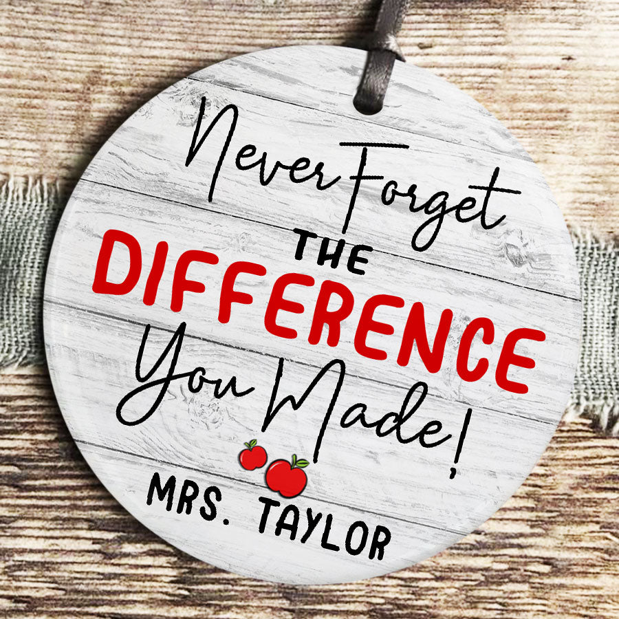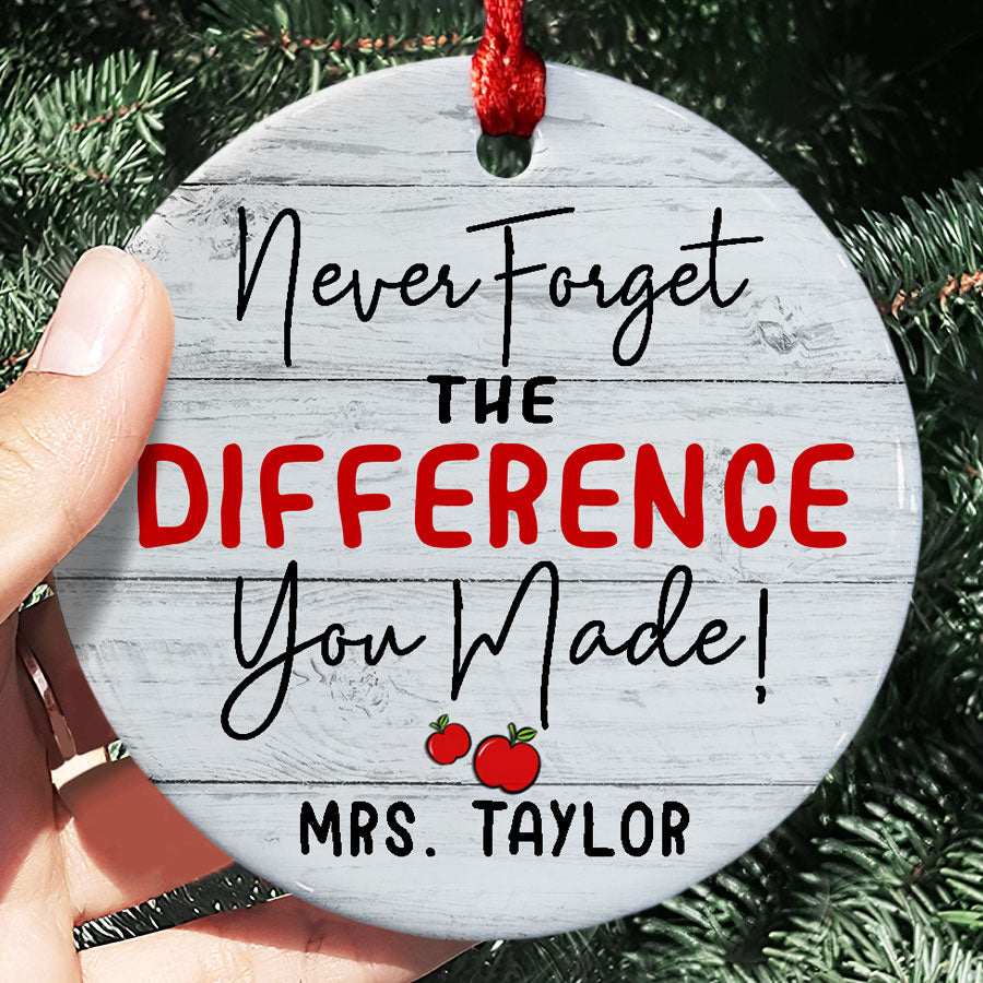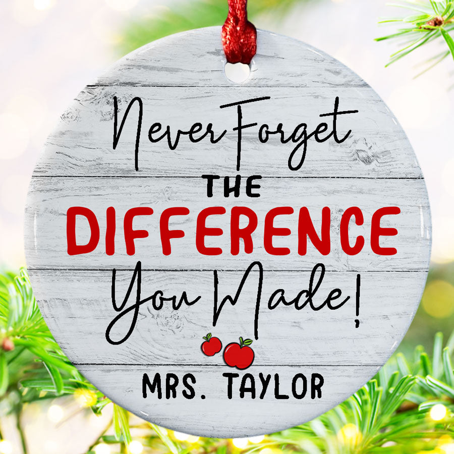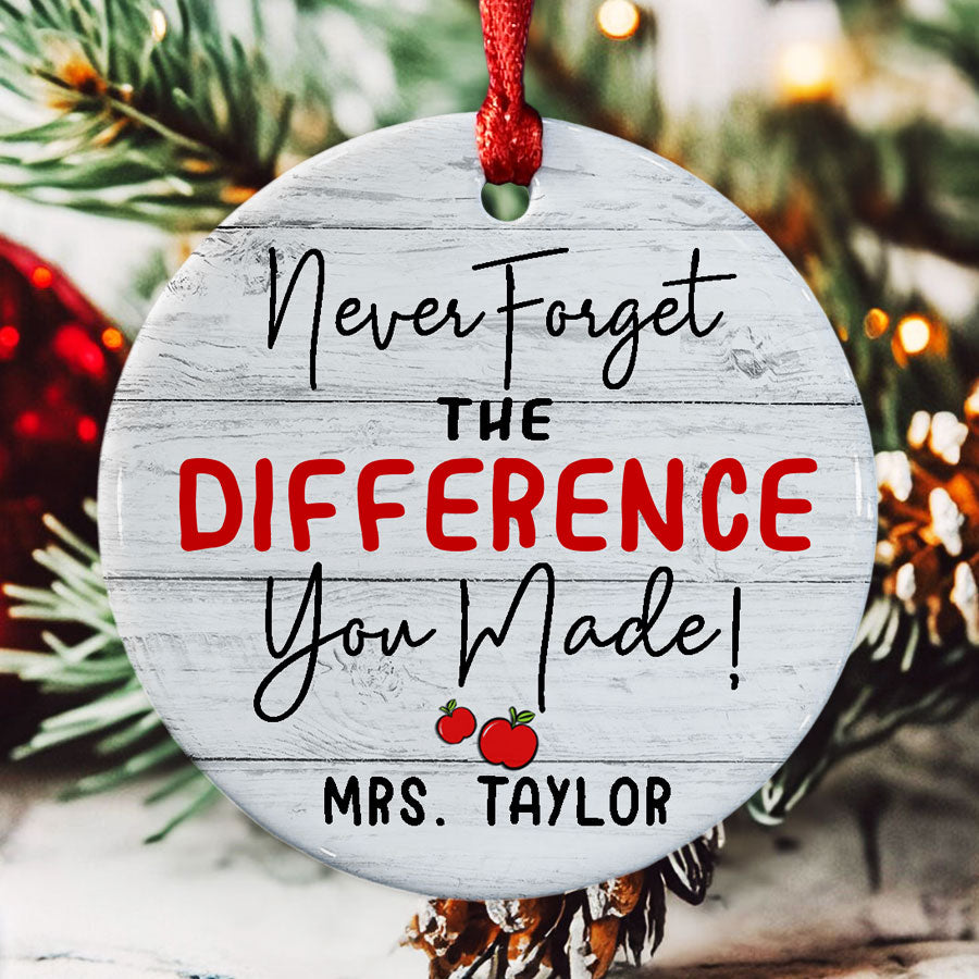 As a parent of a student, you know how much teachers impact our children's lives each day. Our teacher ornament | never forget the difference you made teacher ornaments make a thoughtful way to honor the special educator who inspires your child. Rather than another generic teacher ornament, these personalized Christmas ornaments will hang on their tree all season long to remind them of the difference they make.