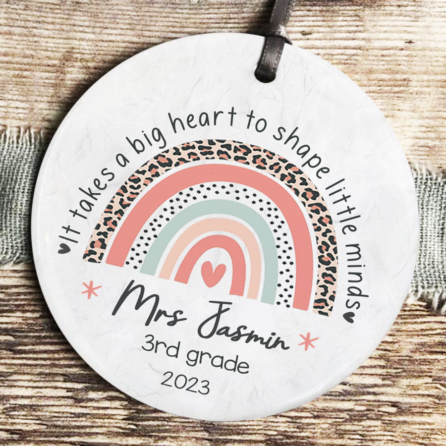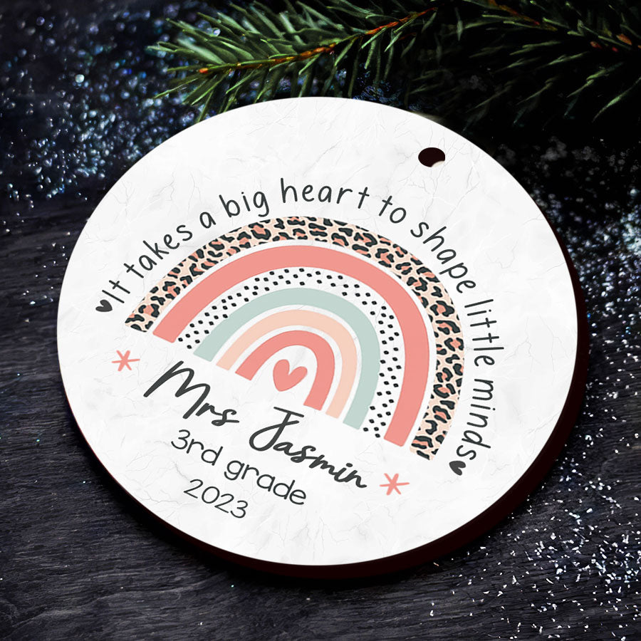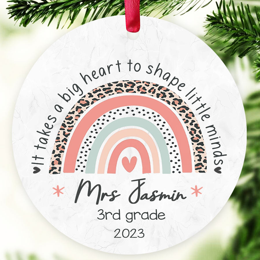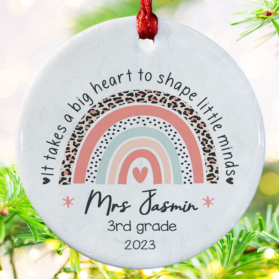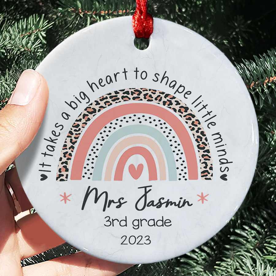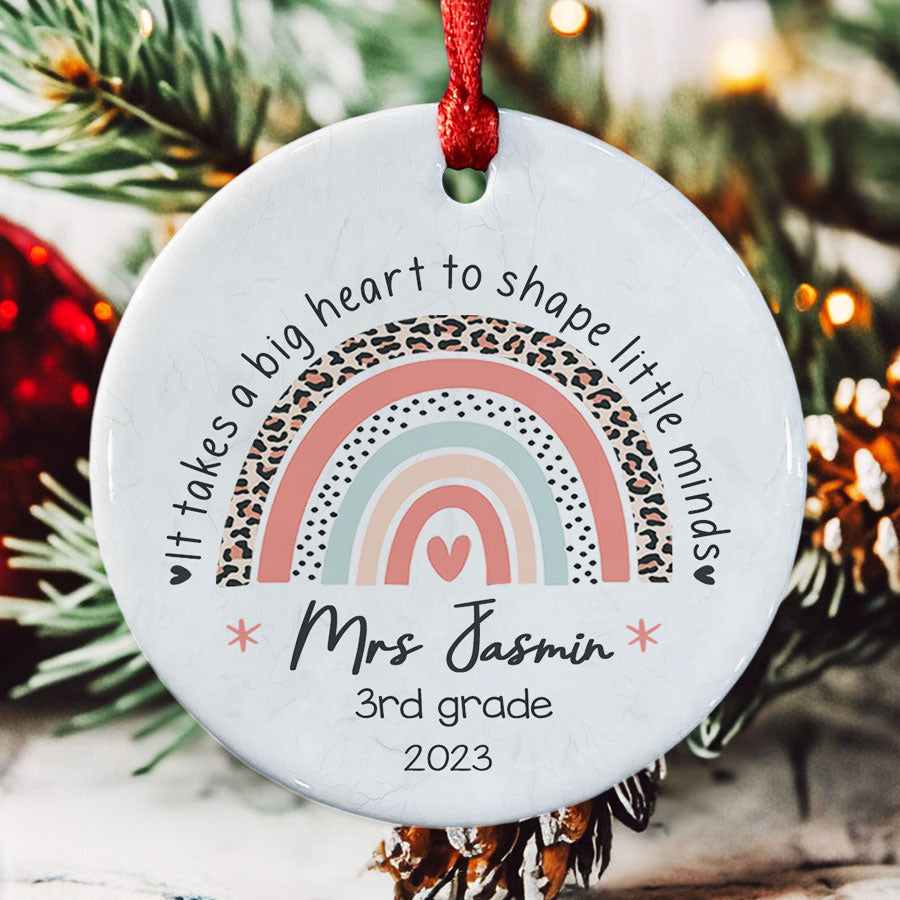 Give the teacher ornament | it takes a big heart to shape little minds teacher christmas ornaments of gratitude that keeps on giving. As they unpack their holiday decorations each year, your teacher will fondly recall their important role in your student's life. It's a small way to pay tribute when words cannot express our true appreciation. Knowing how much joy it brings will warm your teacher's heart for seasons to come.