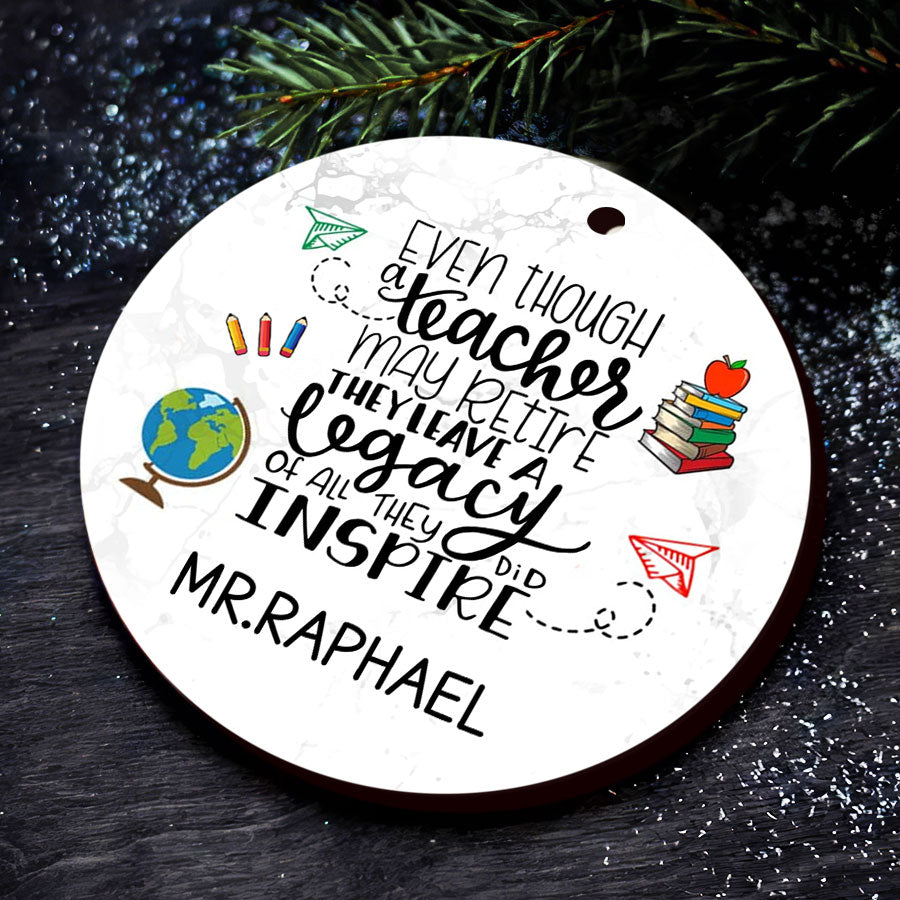 As a parent of a student, you know how much teachers impact our children's lives each day. Our teacher retirement ornament makes a thoughtful way to honor the special educator who inspires your child. Rather than another generic teacher ornament, these personalized Christmas ornaments will hang on their tree all season long to remind them of the difference they make.