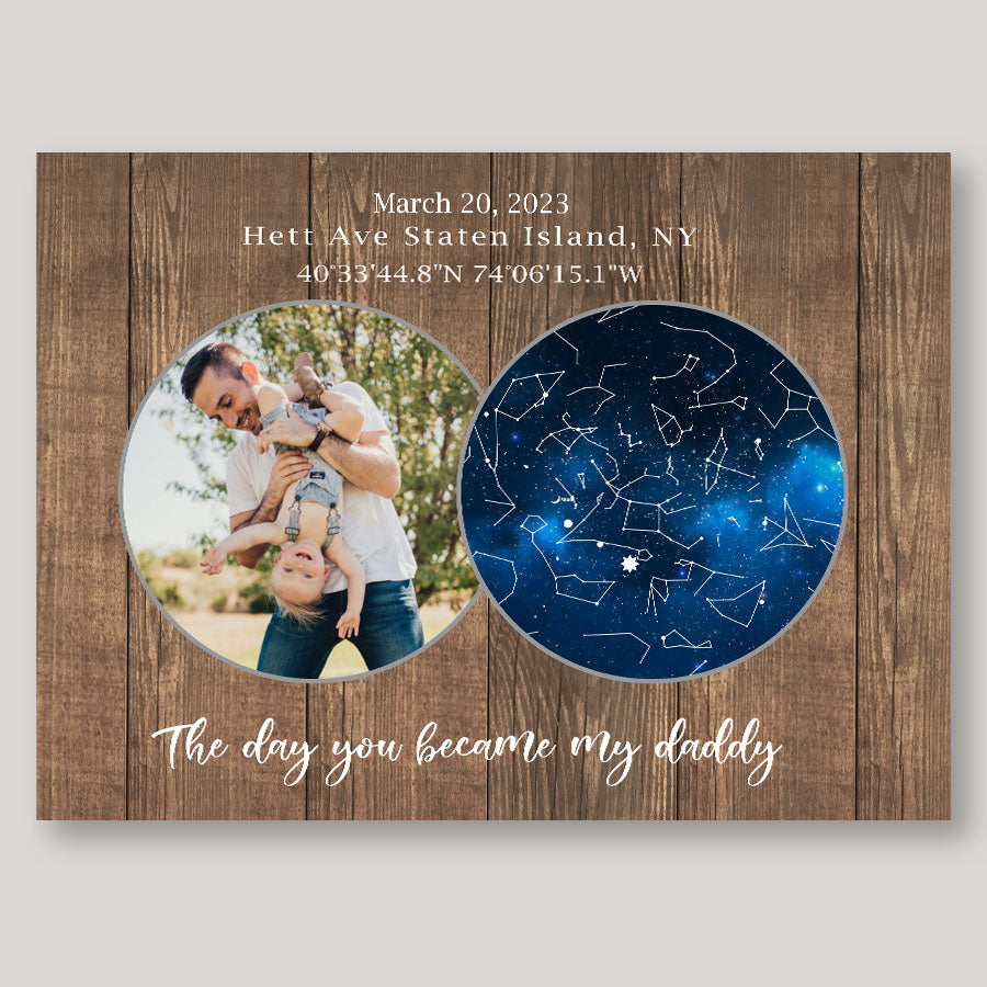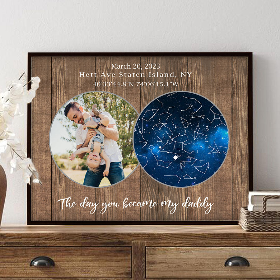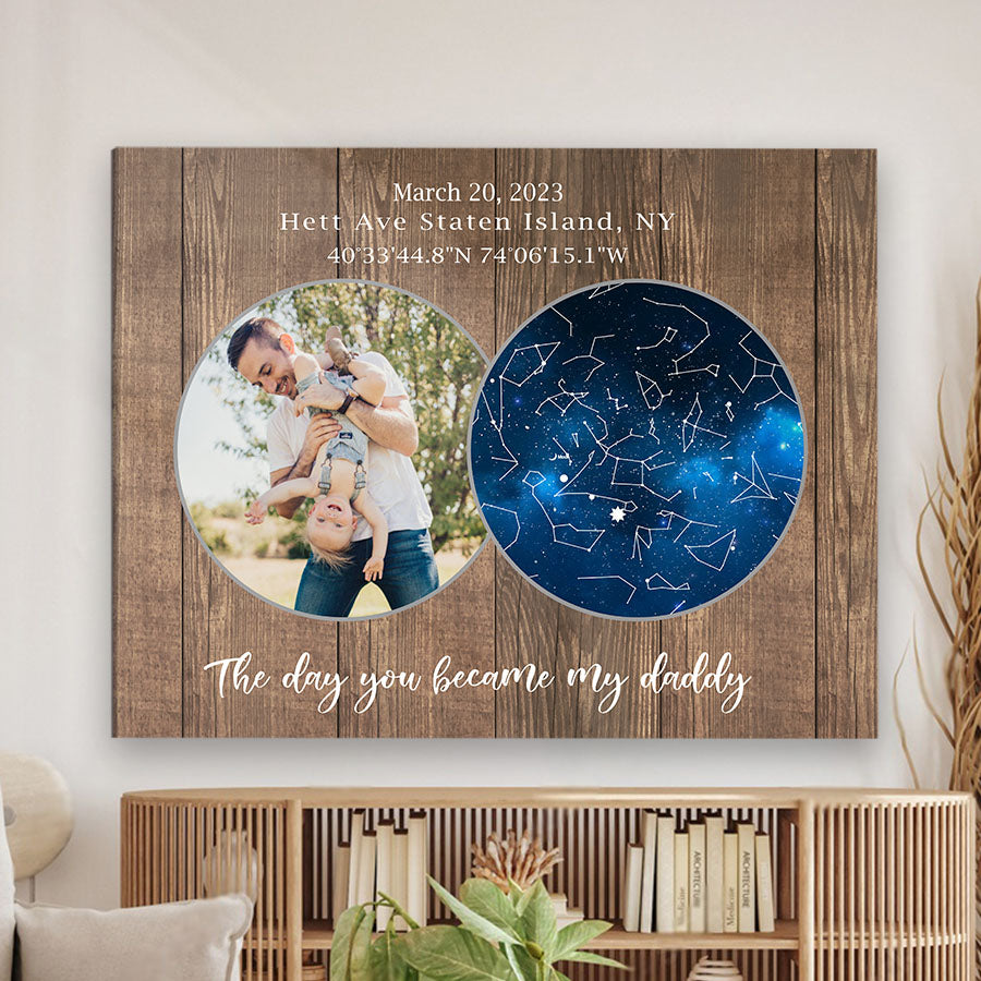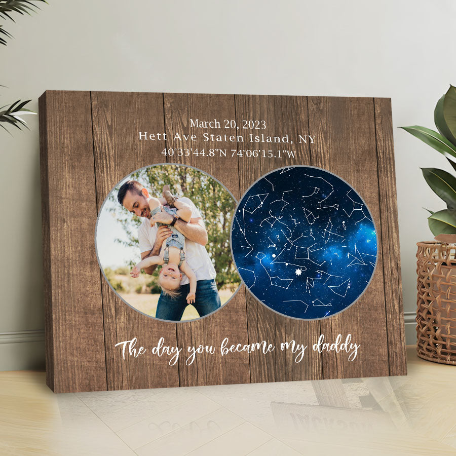 Treat the new dad in your life to the day you became my daddy | 1st time fathers day gift that commemorates the baby's arrival and his first Father's Day. Our personalized photo canvas is sure to bring a smile seeing little ones grow up before their eyes. Customize it FREE now - he will love displaying this treasured memory for many years to come.
