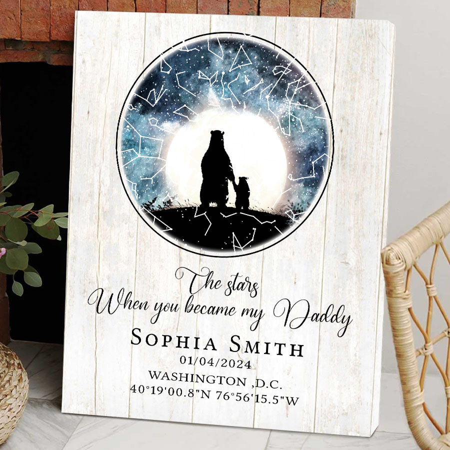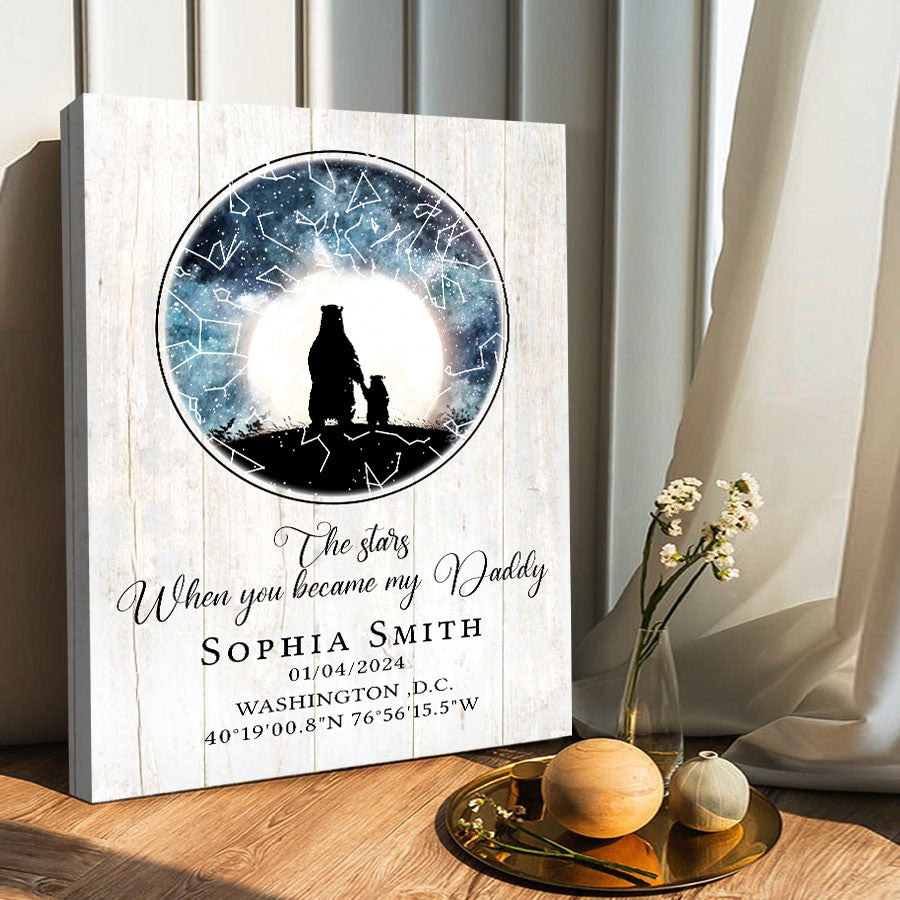 Our personalized canvas décor makes the perfect the stars when you became my daddy | 1st time fathers day gift. For a new father, nothing compares to the joy, love, and responsibility that comes with embracing his new role.