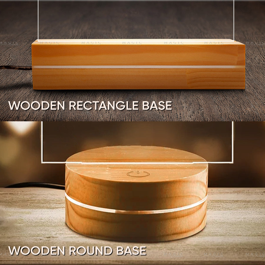 ♥️ The two types of wooden bases are ROUND and RECTANGLE.