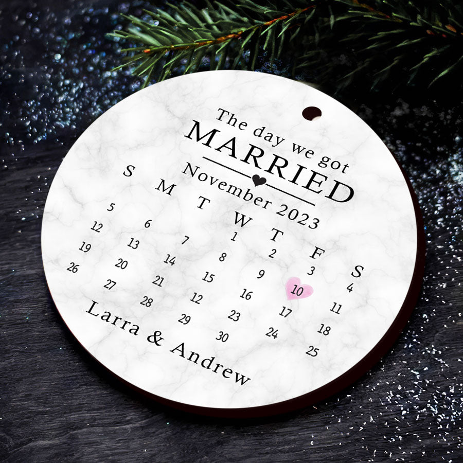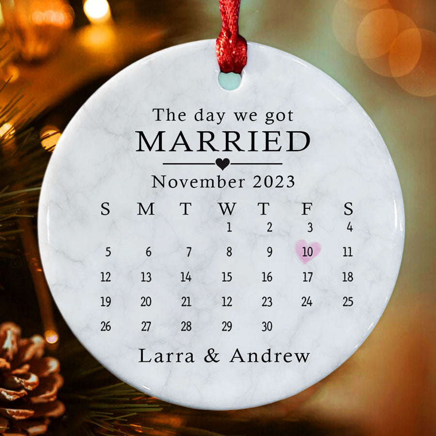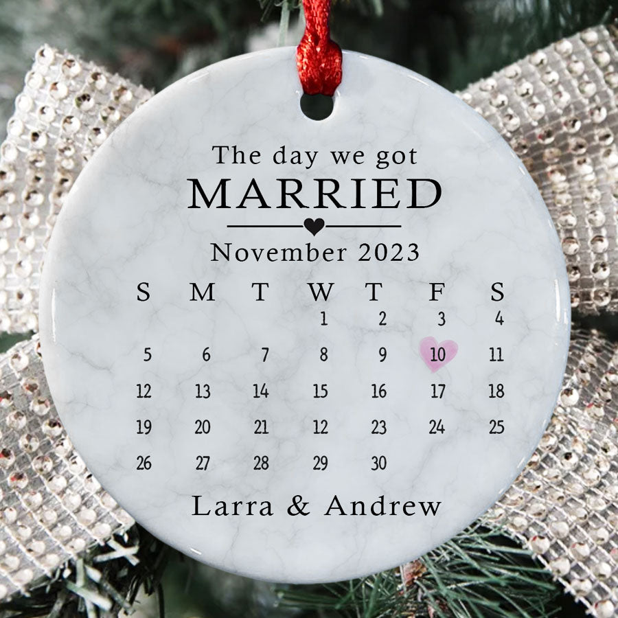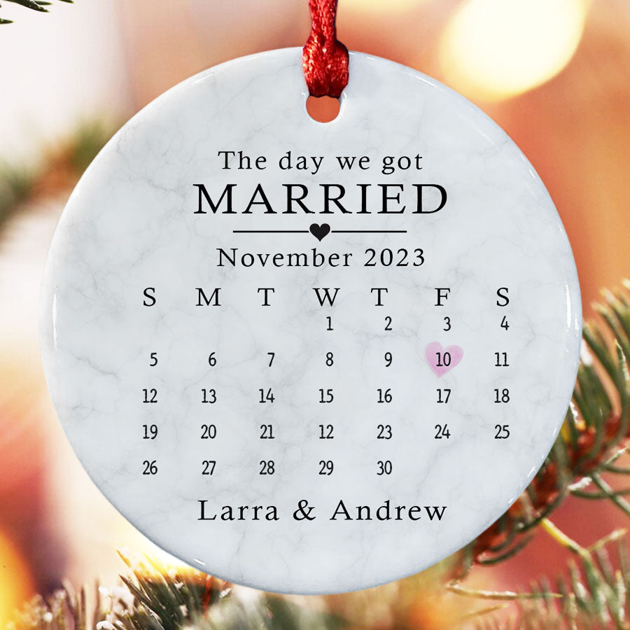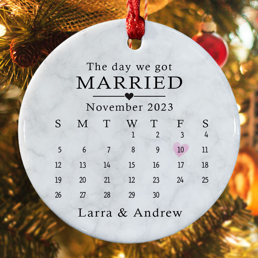 Every holiday season, this ornament will serve as a symbol of the love you promised one another on your wedding day. Small touches like your monogram or wedding location enhance the sentimentality. Don't let the magic of your first Christmas as a married couple fade without this lasting memento. Buy wedding date ornament now to make traditions with your spouse that will be celebrated in your home for years to come. Buy now and receive it before Christmas!