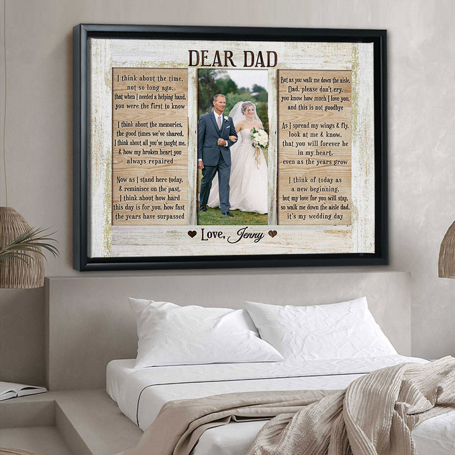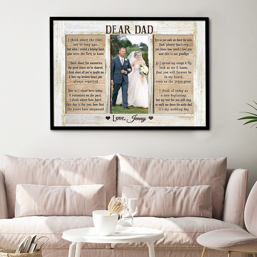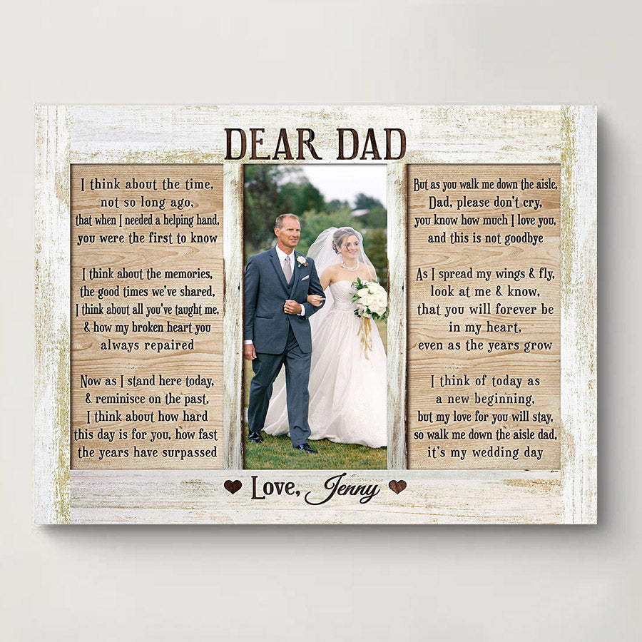 The crisp resolution of this personalized gift from daughter to dad | custom father of the bride wedding thank you gift allows you to select photos with fine details that will be preserved for years to come. But more than just pictures, this gift conveys the deep love, gratitude and respect you feel for everything Dad has done for you. On Father's Day, a day set aside to honor fatherhood and all the hard work dads do every day, this personalized canvas is a thoughtful way to let him know how much you value him and celebrate all he has provided throughout the years.