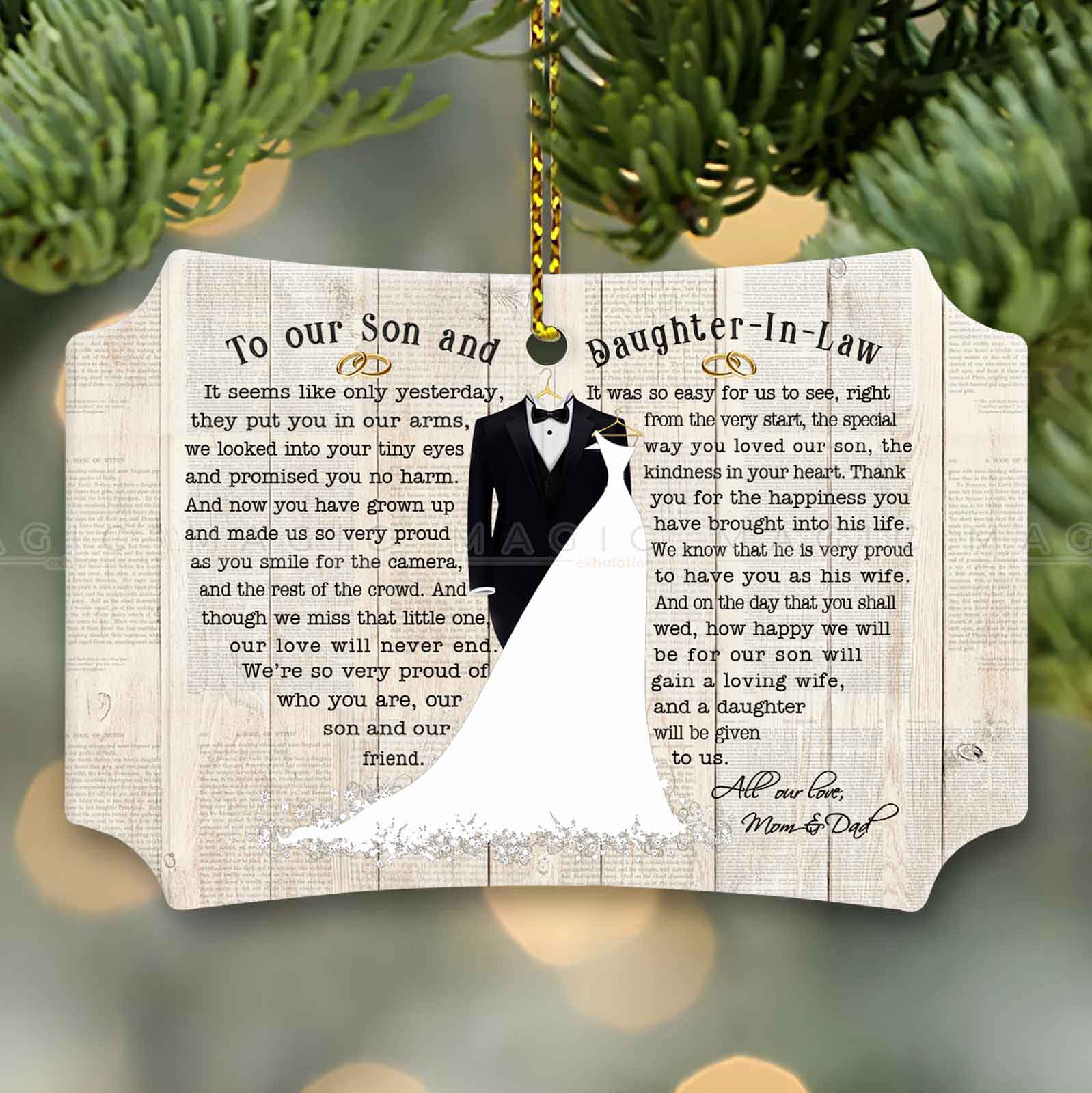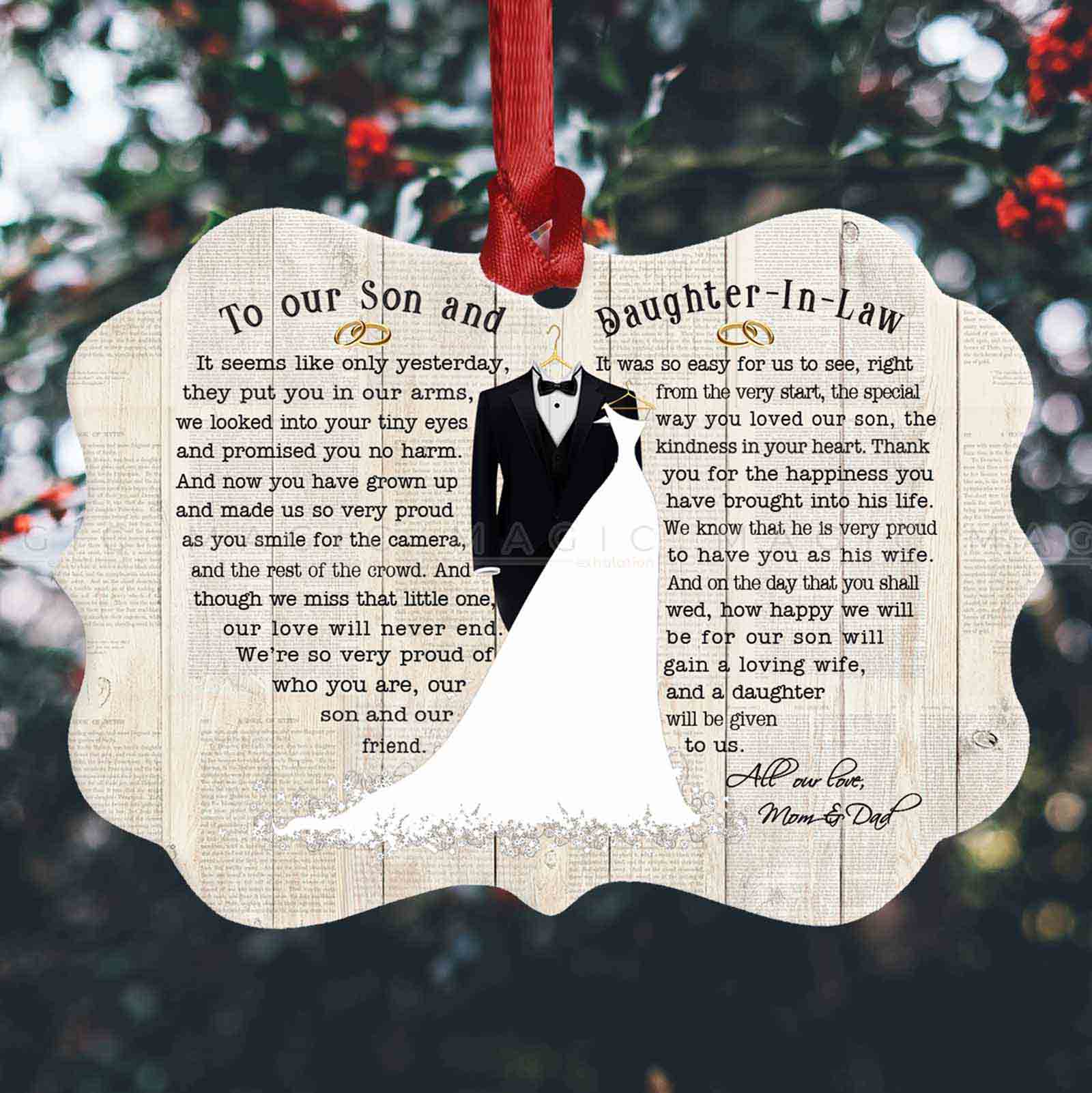 A Wedding Ornament | Daughter in Law Gifts Ideas | Magic Exhalation is the perfect Couple Ornaments gift for the ones you love. You can choose from a wide range of Personalized Christmas Ornaments, each of which can be customized with the name or image of your favorite people.