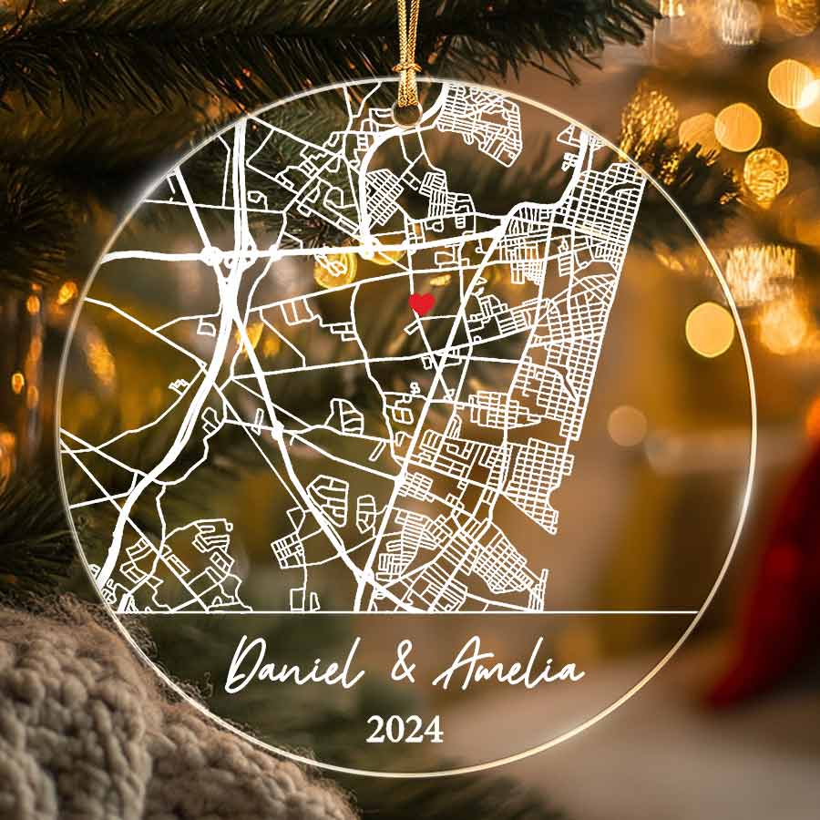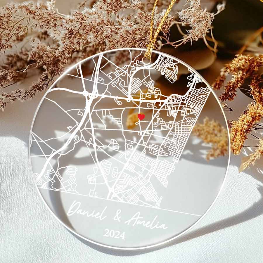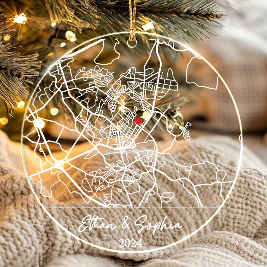 Wedding Christmas Ornament | Wedding Acrylic Ornament With Custom Map | Circle Ornament
