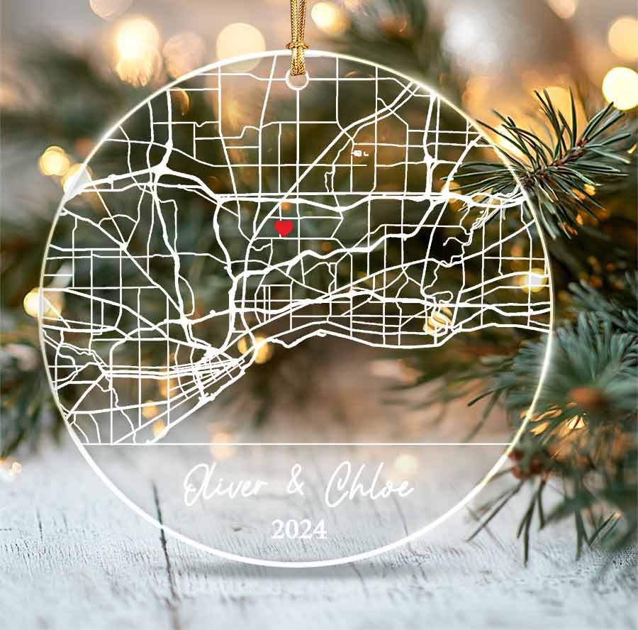 Enhance the magic of your wedding day with our stunning wedding ornament | wedding acrylic ornament with custom map | circle ornament that beautifully reflect your unique love story. You can choose from a wide range of Wedding Ornament or from Personalized Christmas Ornaments for Couples, each of which can be customized with the name or image you want.