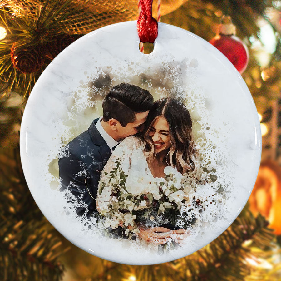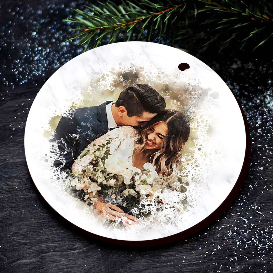 Every holiday season, this ornament will serve as a symbol of the love you promised one another on your wedding day. Small touches like your monogram or wedding location enhance the sentimentality. Don't let the magic of your first Christmas as a married couple fade without this lasting memento. Buy wedding photo ornament | first christmas ornaments wedding now to make traditions with your spouse that will be celebrated in your home for years to come. Buy now and receive it before Christmas!