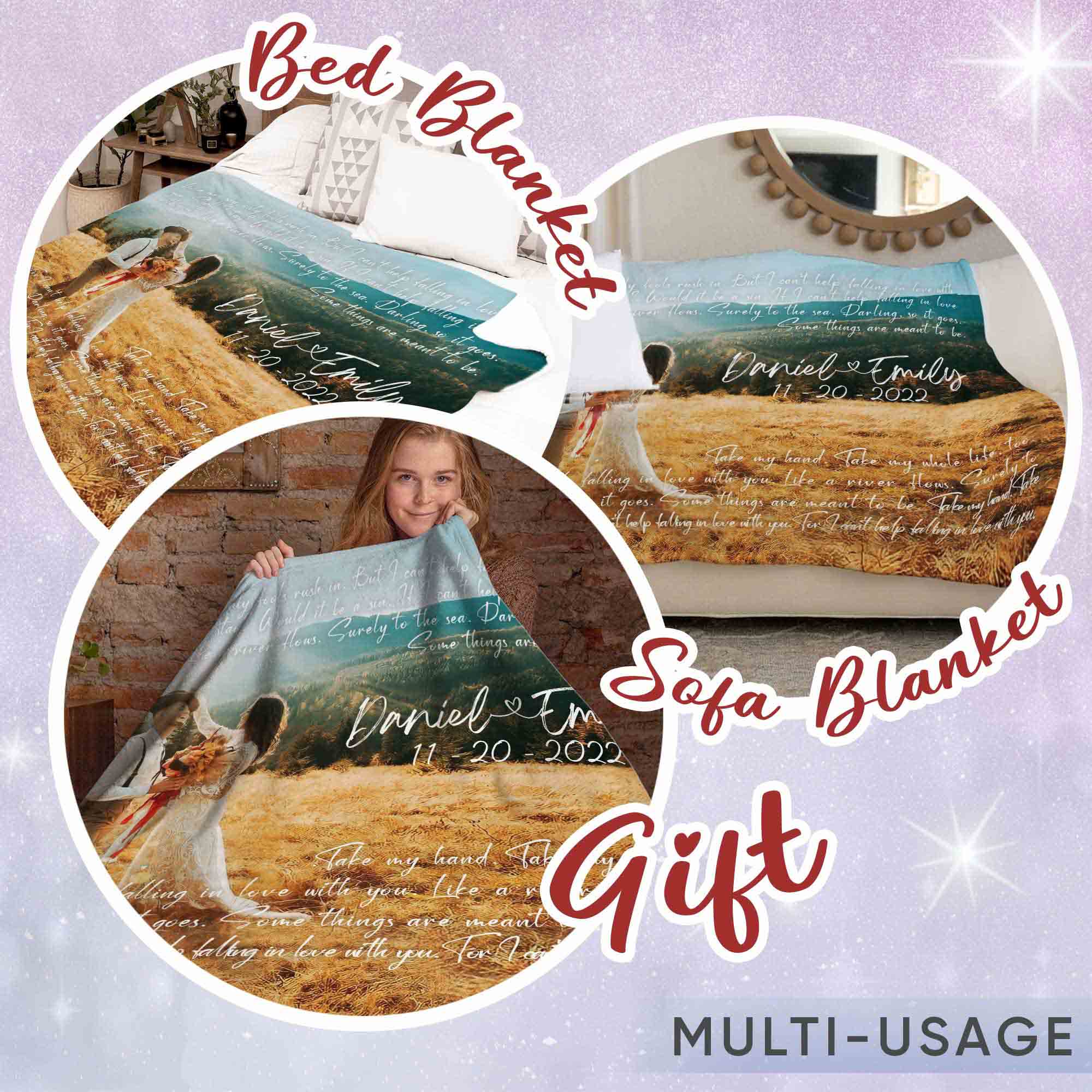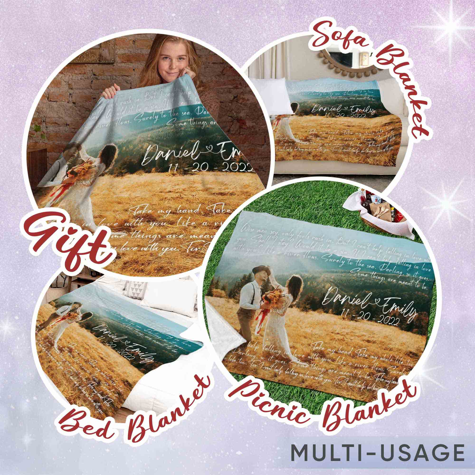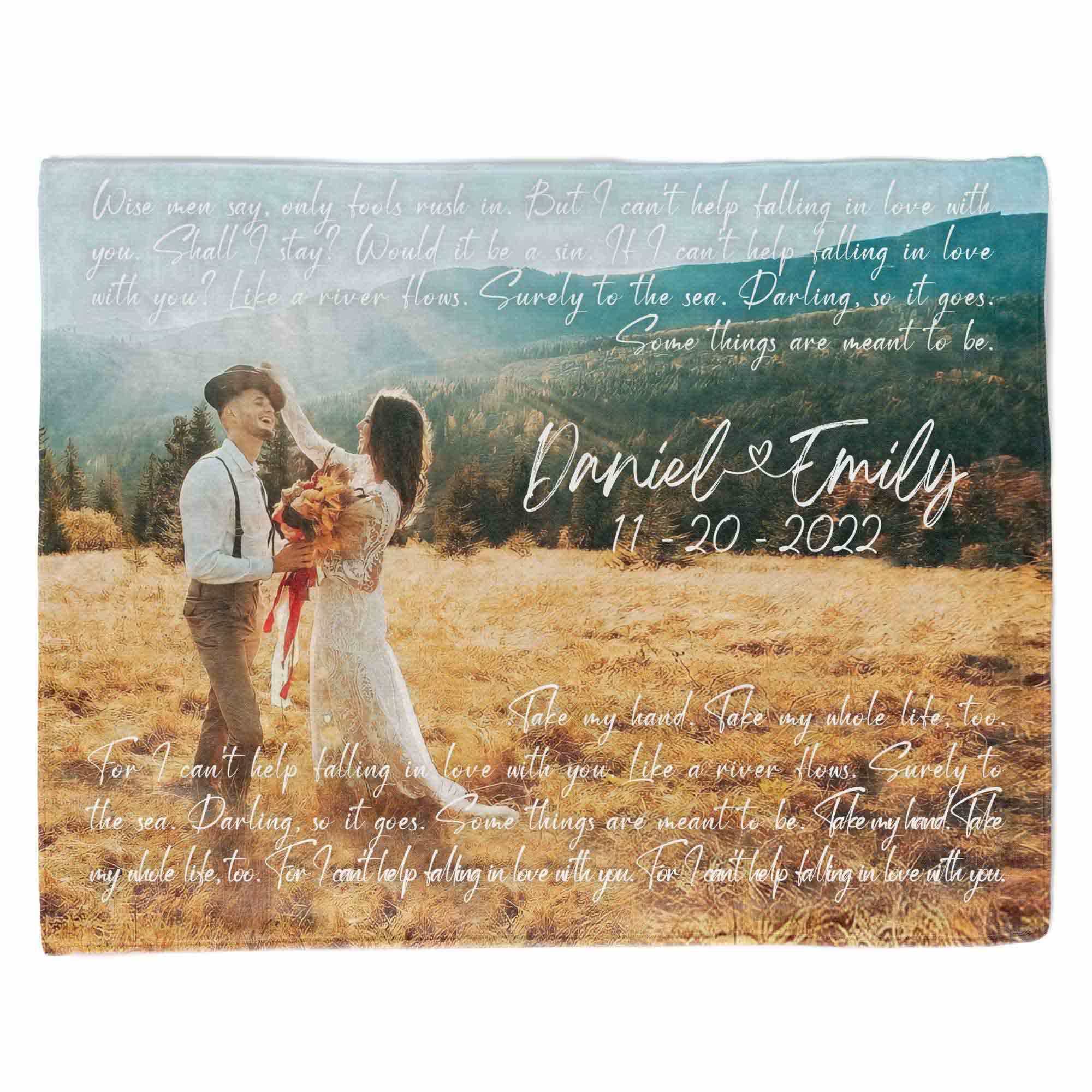 Whether it's a song that reminds you of your relationship or holds special significance, a wedding picture with song lyrics blanket featuring treasured lyrics is sure to be a hit. Let us help you design the perfect personalized gift at Magicexhalation.