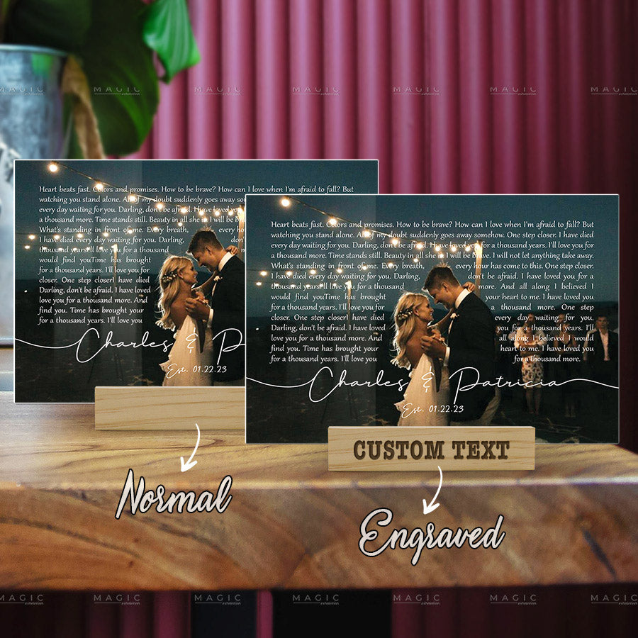 ♥️Personalization, such as names, dates, brief text, and so on, may also be engraved on the wooden base.