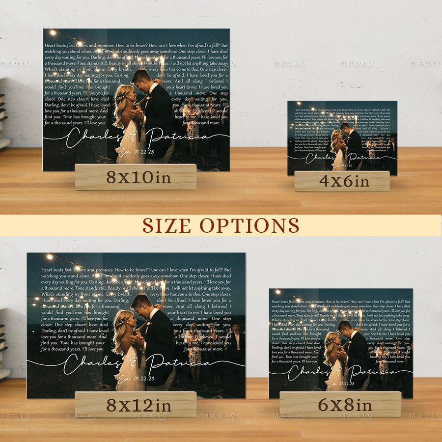 This is a heartfelt wedding song gift that will be cherished for years to come and serve as a reminder of your love for each other.