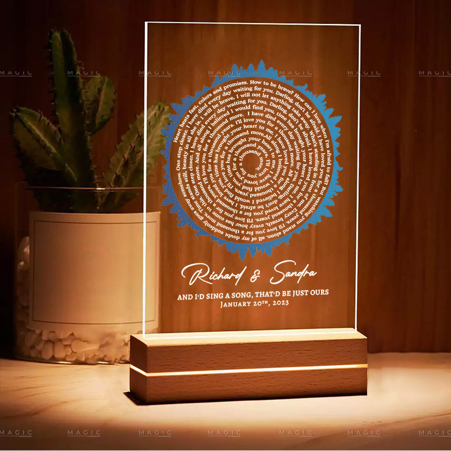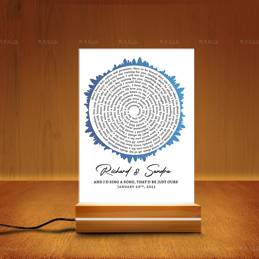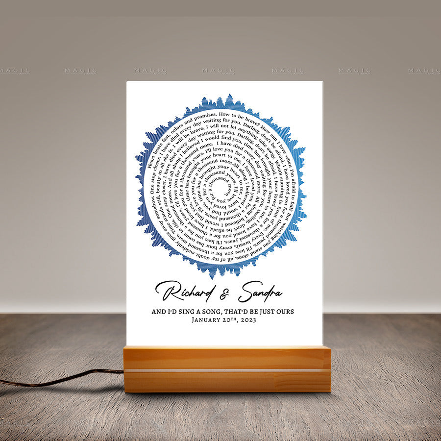 This beautiful wedding song lyrics gift is made from high-quality acrylic and can be personalized with your couple's name or a favorite photo. Show your loved one how much you care with this unique gift that they can display proudly in their home or office.