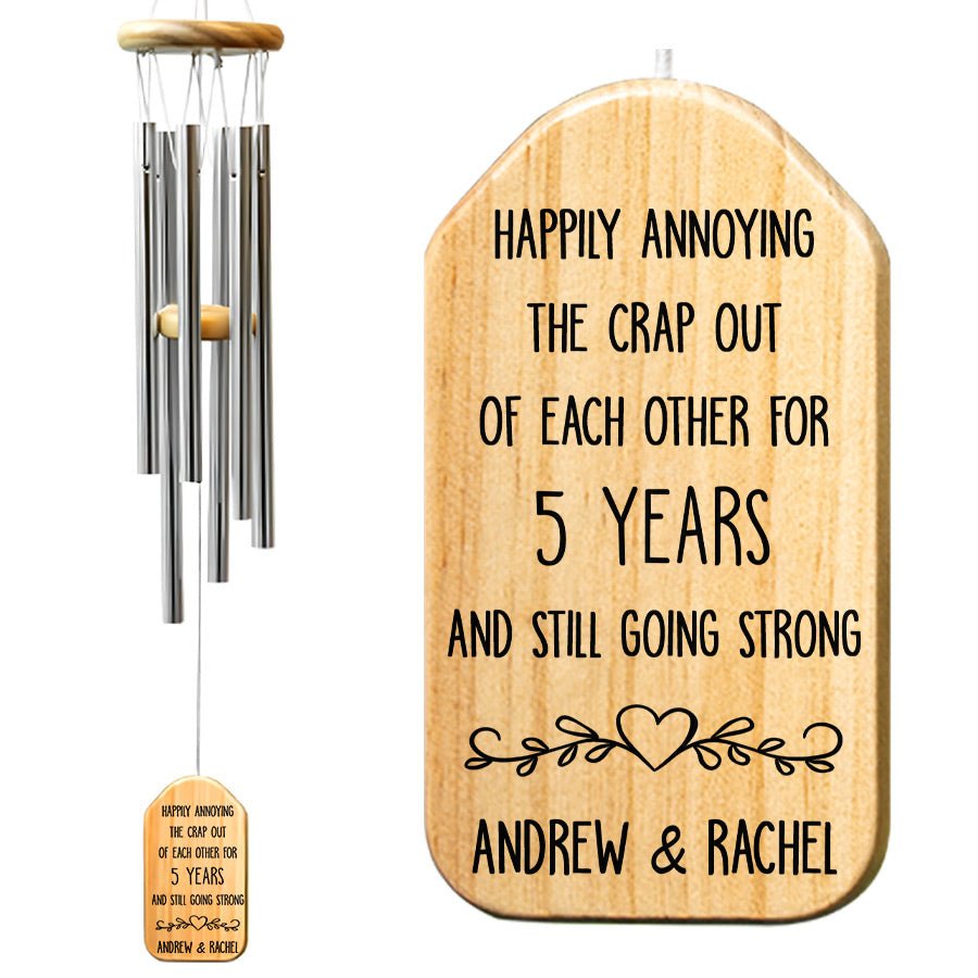 Romantic Wooden Anniversary Gifts | 5 Year Anniversary Gift For Husband | Photo Wind Chimes | Personalized Wind Chimes With PicturesShop now wood gifts anniversary to give your loved one an anniversary wind chime that represents the memories being made, year after year. The music will remain long after the gift, evoking a lifetime of love with each gentle note.