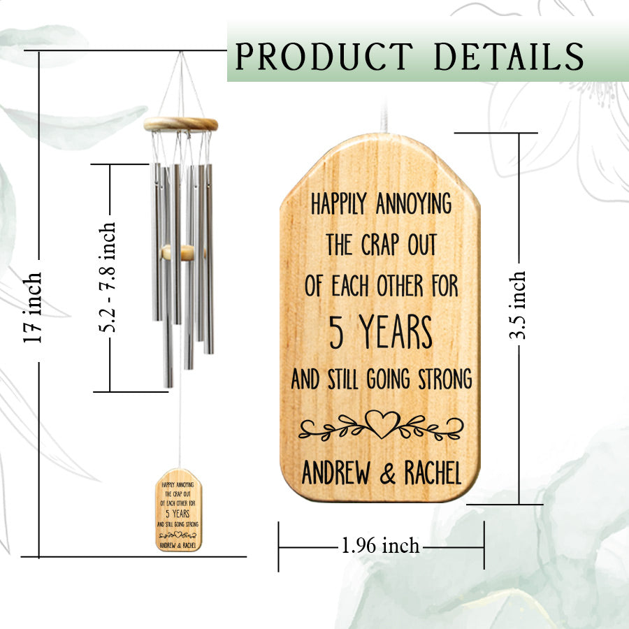 With each year that passes, the anniversary wind chime will welcome your partner home, bringing comfort and familiar cheer. Its melodies dancing in the air become a symbol of peaceful evenings spent talking, laughing and growing together.