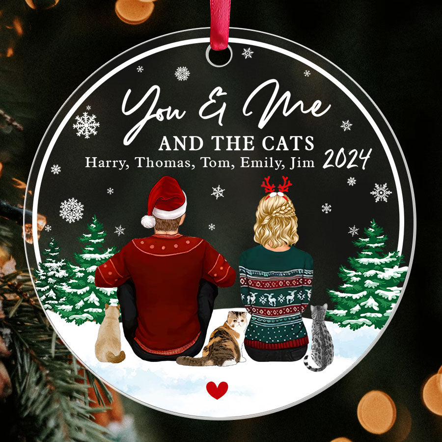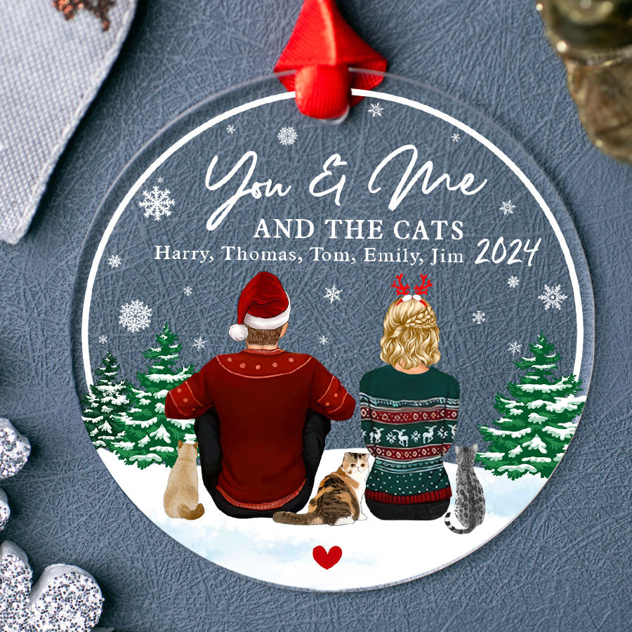 You And Me And The Cats Ornament | Couple Ornament With 2 Cat